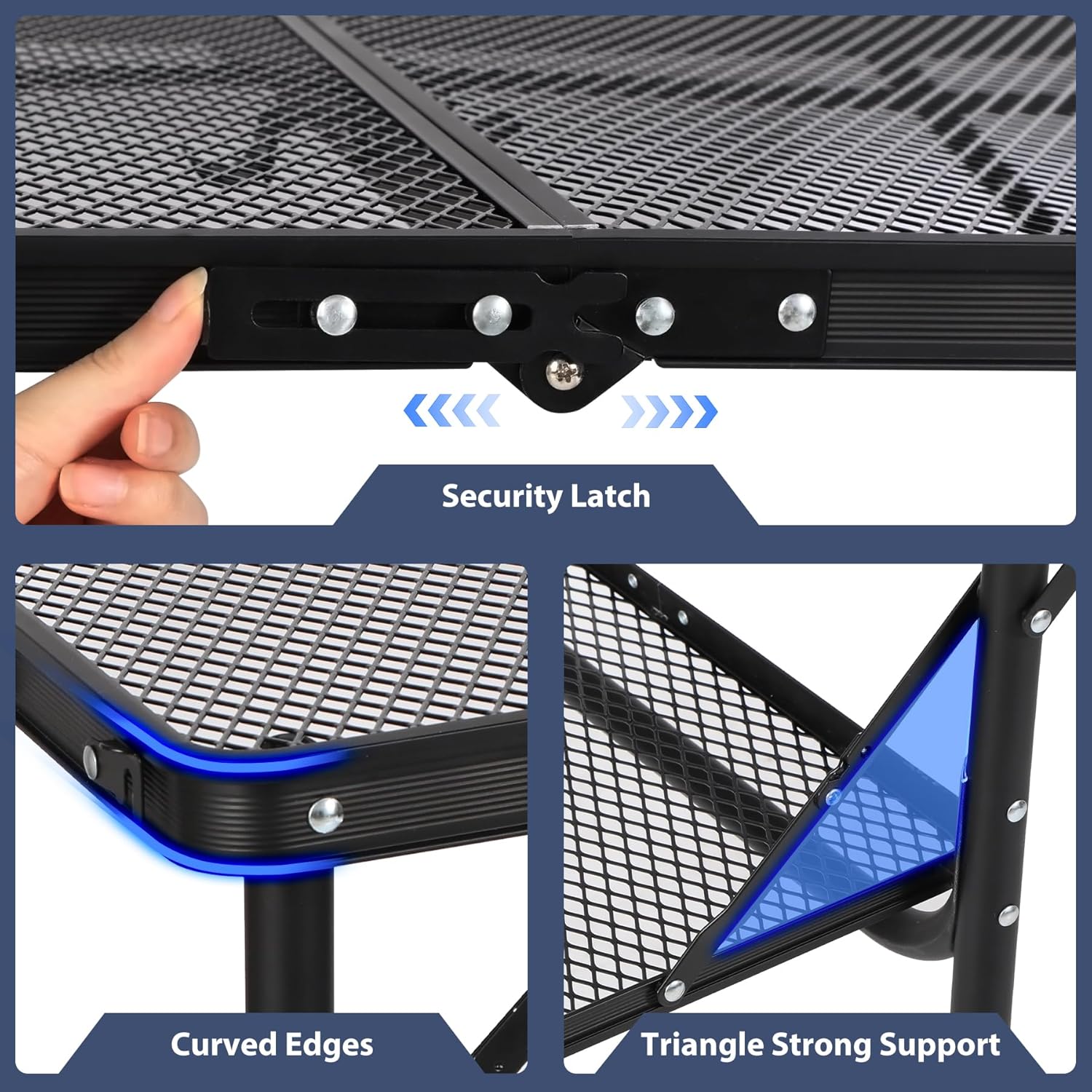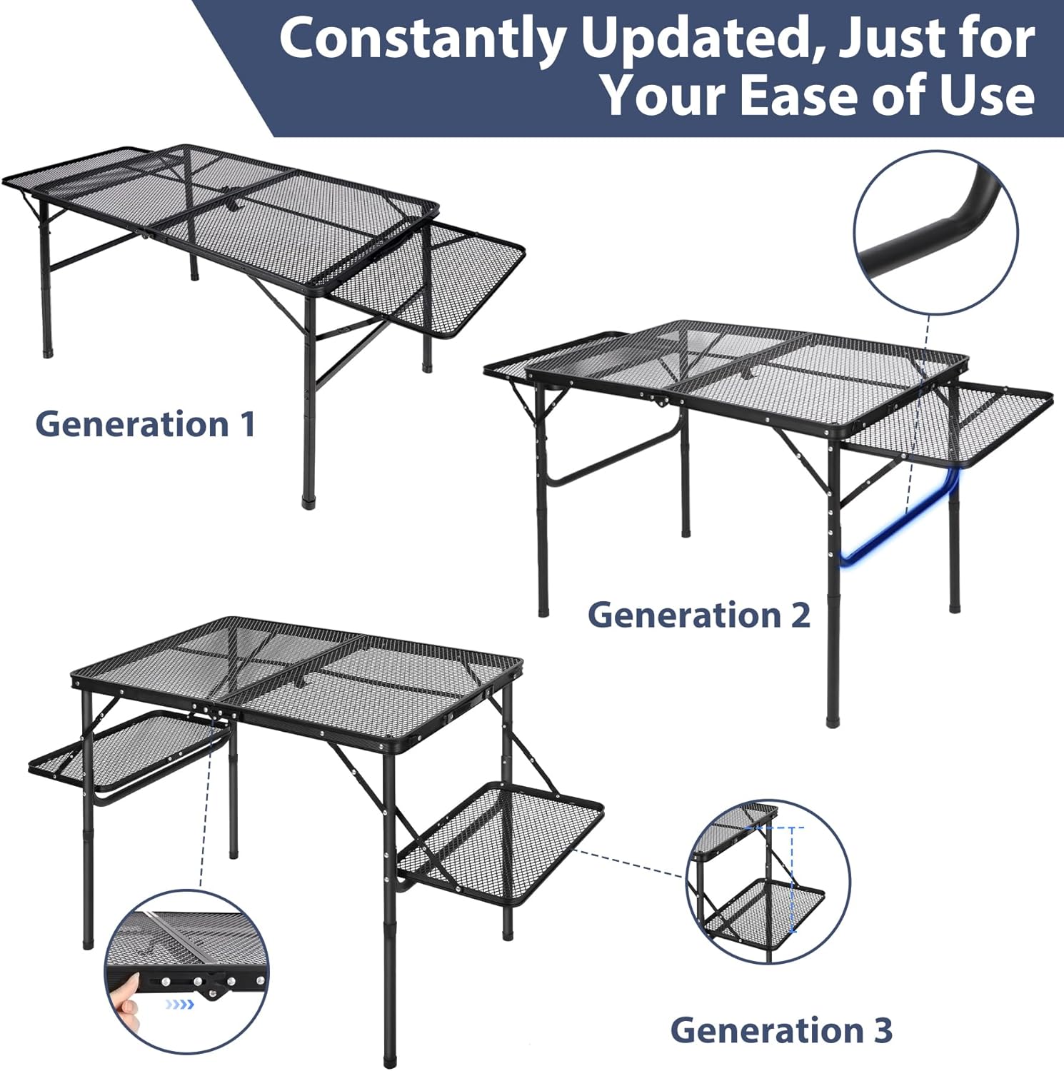 - Premium Material&Design: This aluminum grill table is made of powder coating iron mesh (table top) and thicker aluminum alloy frame (Diameter 25mm). It also has U-shape side support and secure latch to ensure stable use.