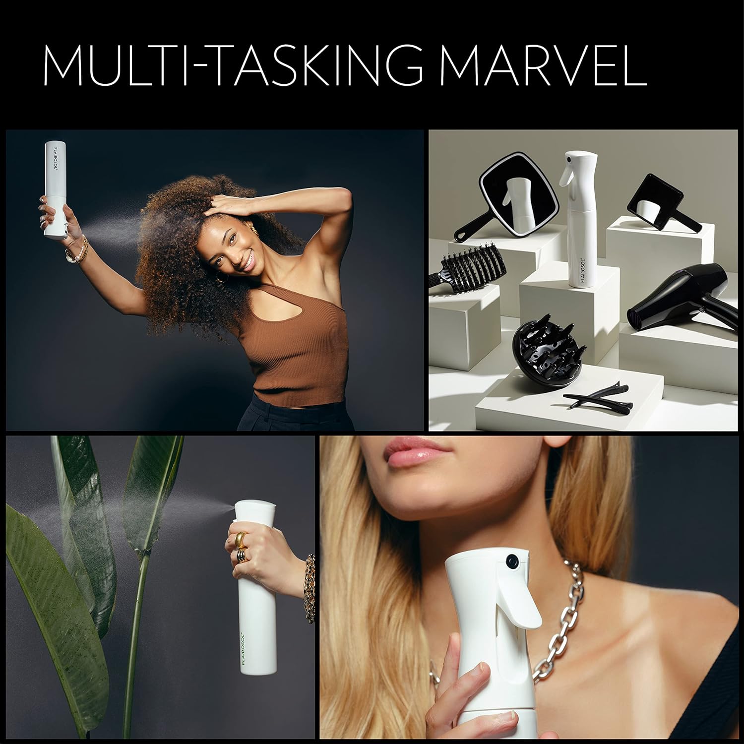 - VERSATILE: This hair spray bottle has an ultra-fine continuous mist that sprays evenly over large areas, making those hard-to-reach jobs a breeze. Do it with Flair