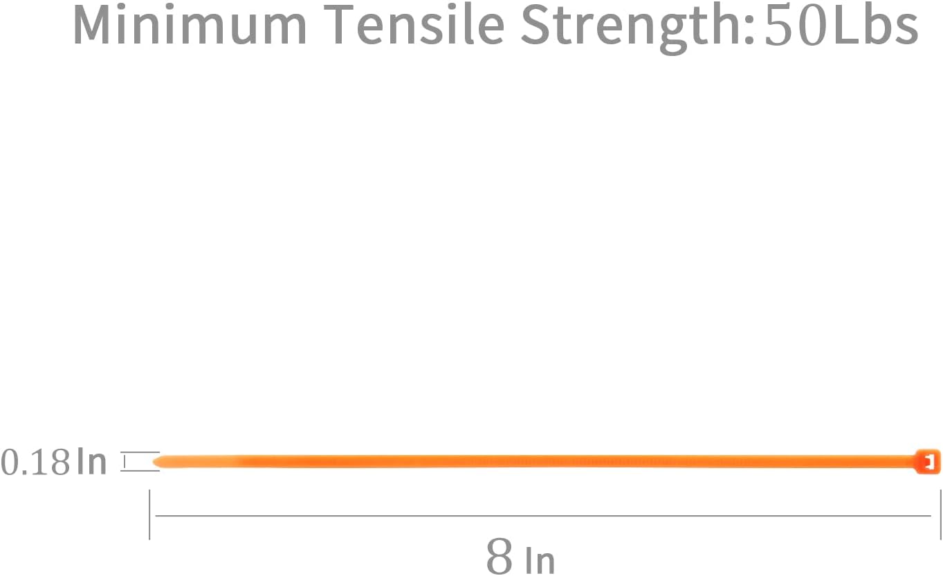XINGO 1000 PCS Orange Zip Ties 8 Inch, 60 LBS Tensile Strength, Self-Locking Nylon Plastic Nylon PA66 Wire Ties for Indoor and Outdoor Use