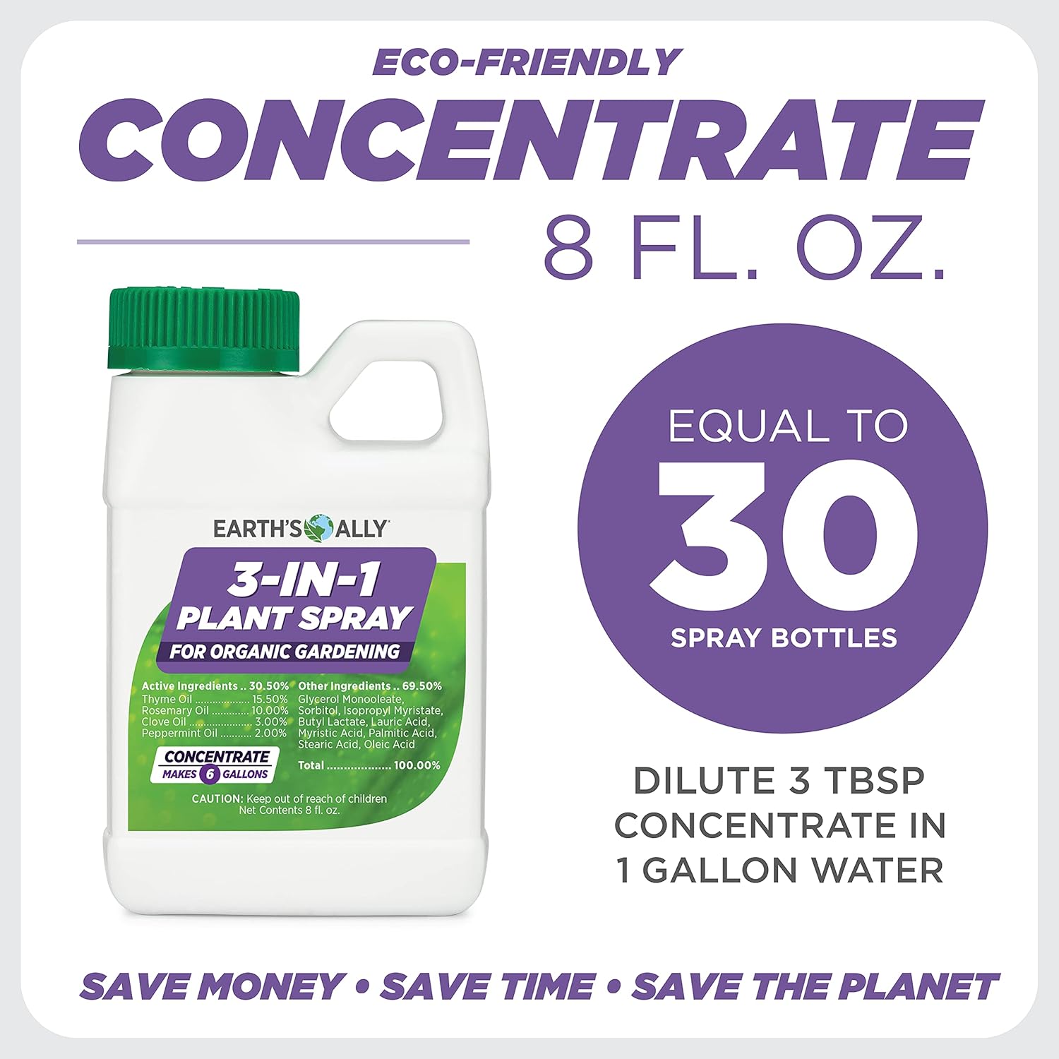 Earth's Ally 3-in-1 Plant Spray 8 oz Conc. Makes 6 gal | Better Than Neem Oil | Insecticide, Fungicide & Spider Mite Control for Organic Gardening, Pest Repellent for Indoor & Outdoor Gardening