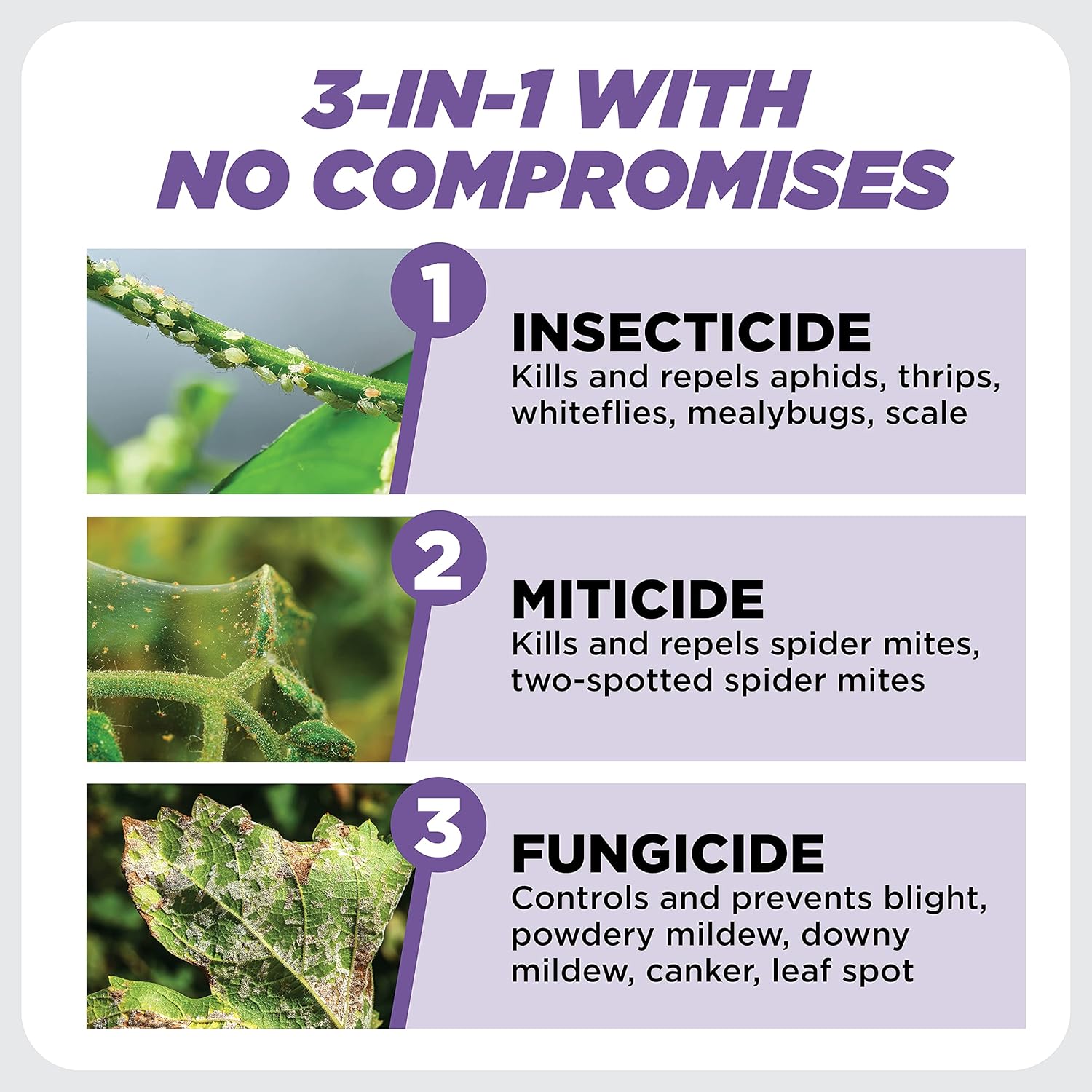 - 3-IN-1 GARDEN SPRAY - Earth’s Ally 3-in-1 Plant Spray is an insecticide, miticide and fungicide. The formula effectively controls soft-bodied insects and common plant diseases with a synergistic blend of botanical oils.