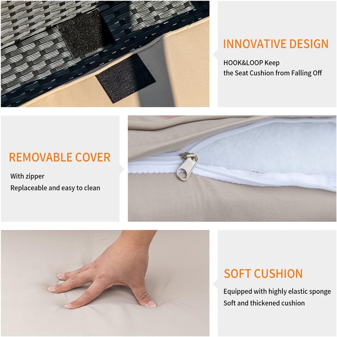 - [Wide Usage] The patio furniture will make for a perfect addition to your outdoors, balcony, porch, yard, apartment, and bistro so that you just sit back and enjoy your time. The outdoor conversation set has strong feet to protect your floor and increase the stability of your furniture.