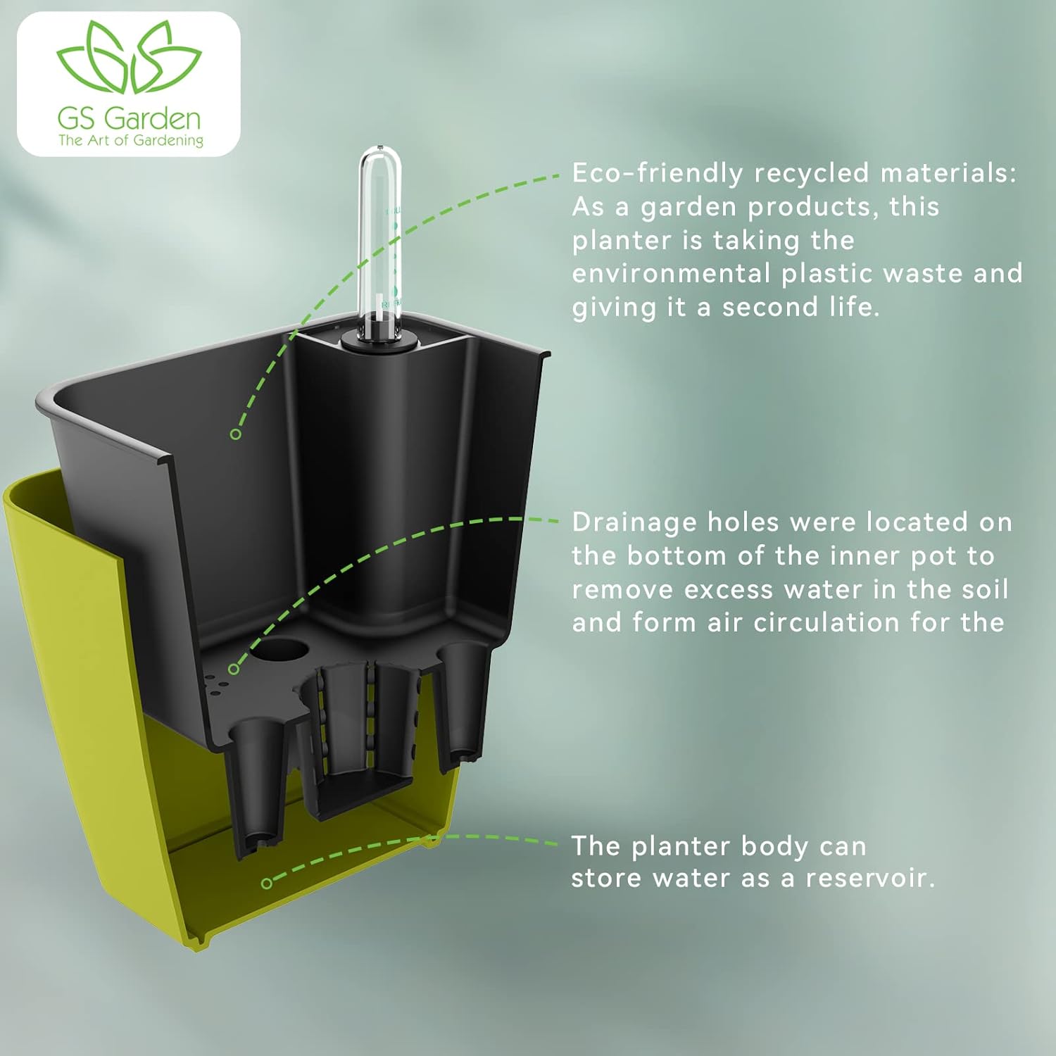 - GS Garden self-watering planters is an ideal plant pot for for All Outdoor/Indoor plants. The special water inlet design can avoid soil collapse and lead to excessive hardening of the flower soil. The root system can fully grow in the soft soil.Ideal for residential and commercial grades