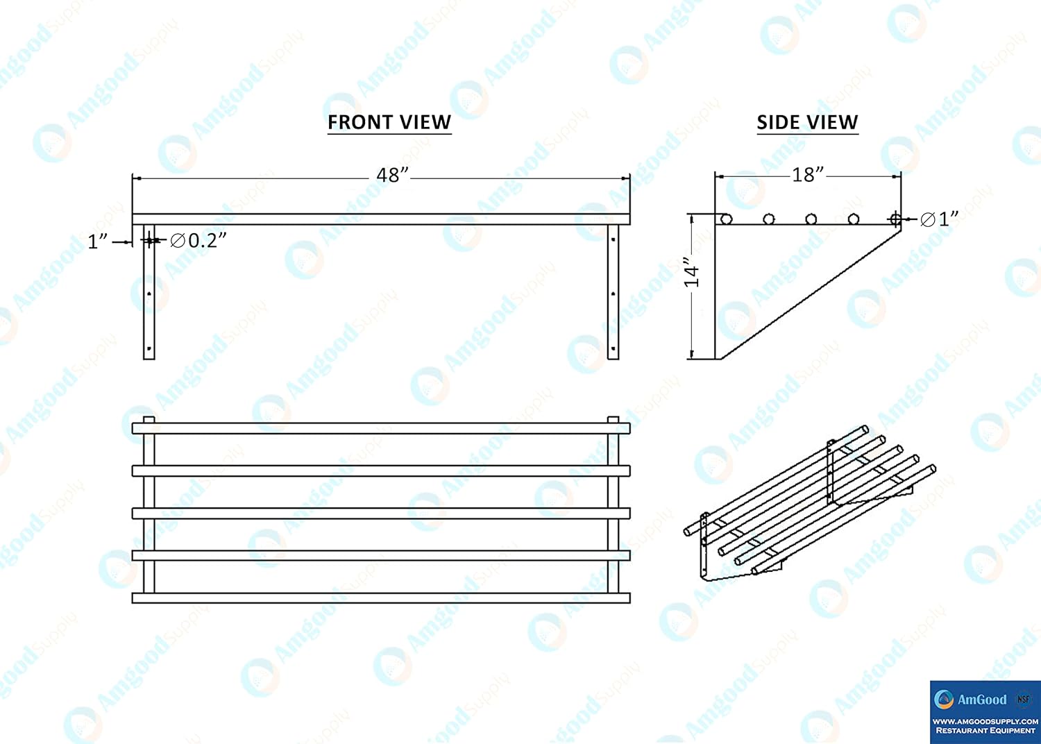 AmGood 18 in. x 48 in. NSF Stainless Steel Tubular Wall Shelf | Heavy-Duty Metal Shelving for Appliances & Equipment | Ideal for Kitchen, Restaurant, Garage, Laundry, Utility Room