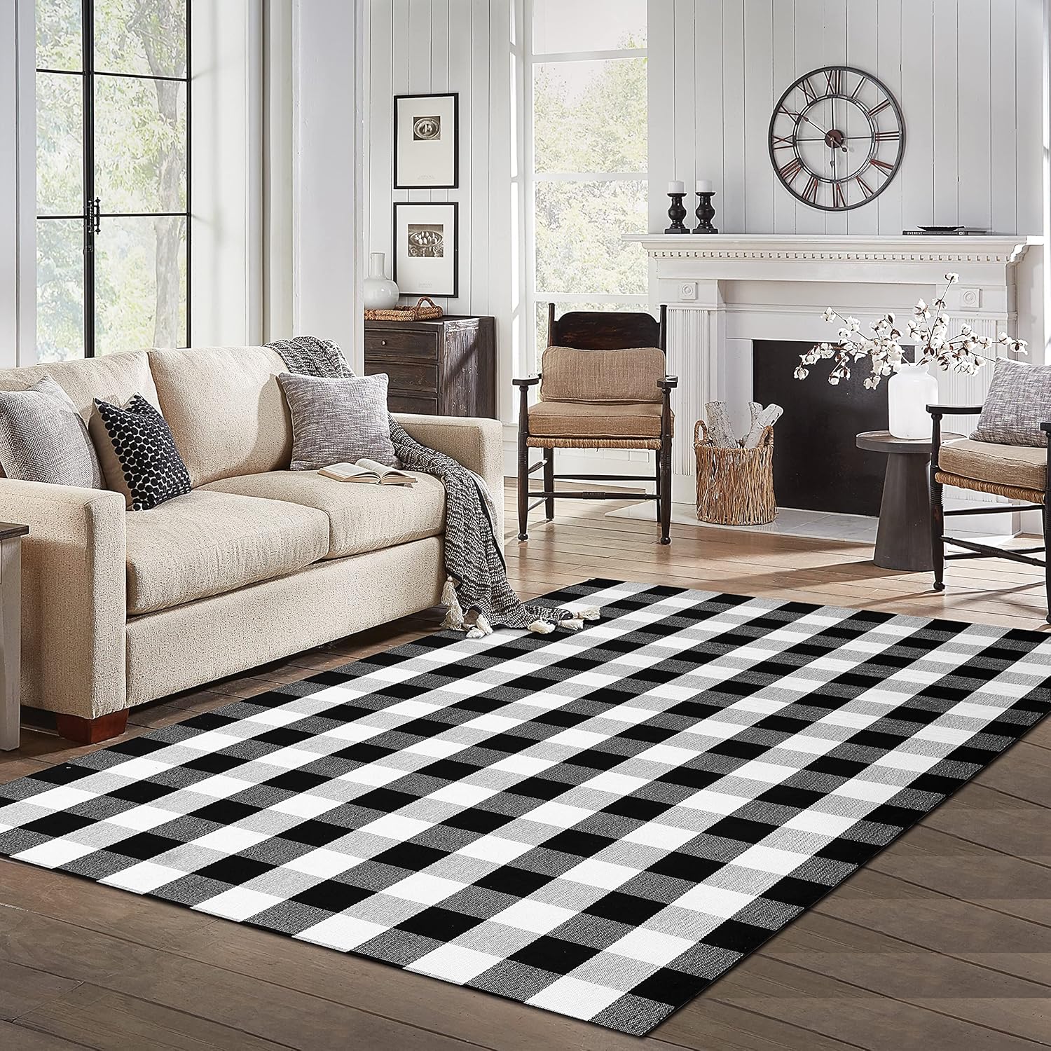 - Easy to Clean: This black and white checkered rug is simple to maintain with machine wash or vacuuming to remove dirt. The rug is sturdy and can be tumble dried on low. Keep your door rug fresh and clean with minimal effort. NOTE: Cotton rugs normally shrink slightly after washing