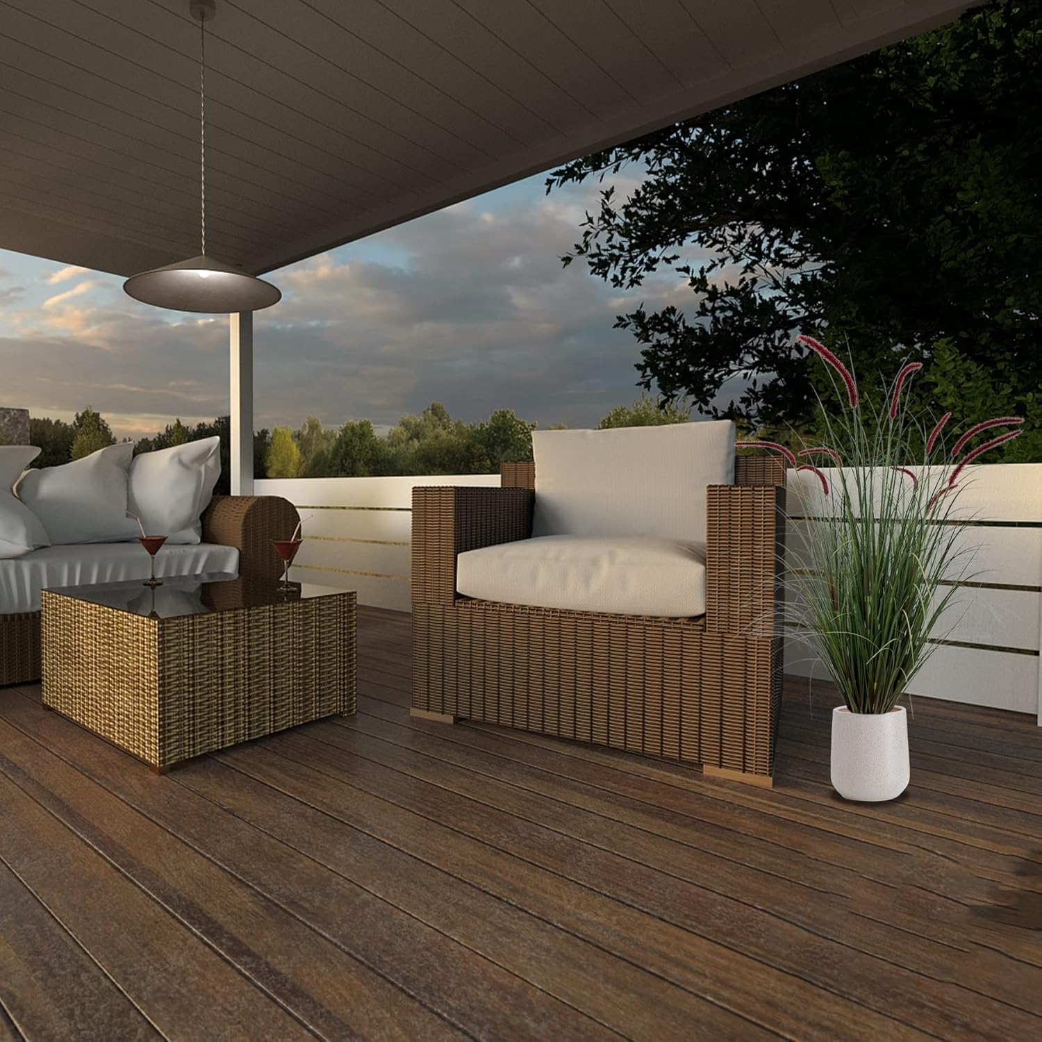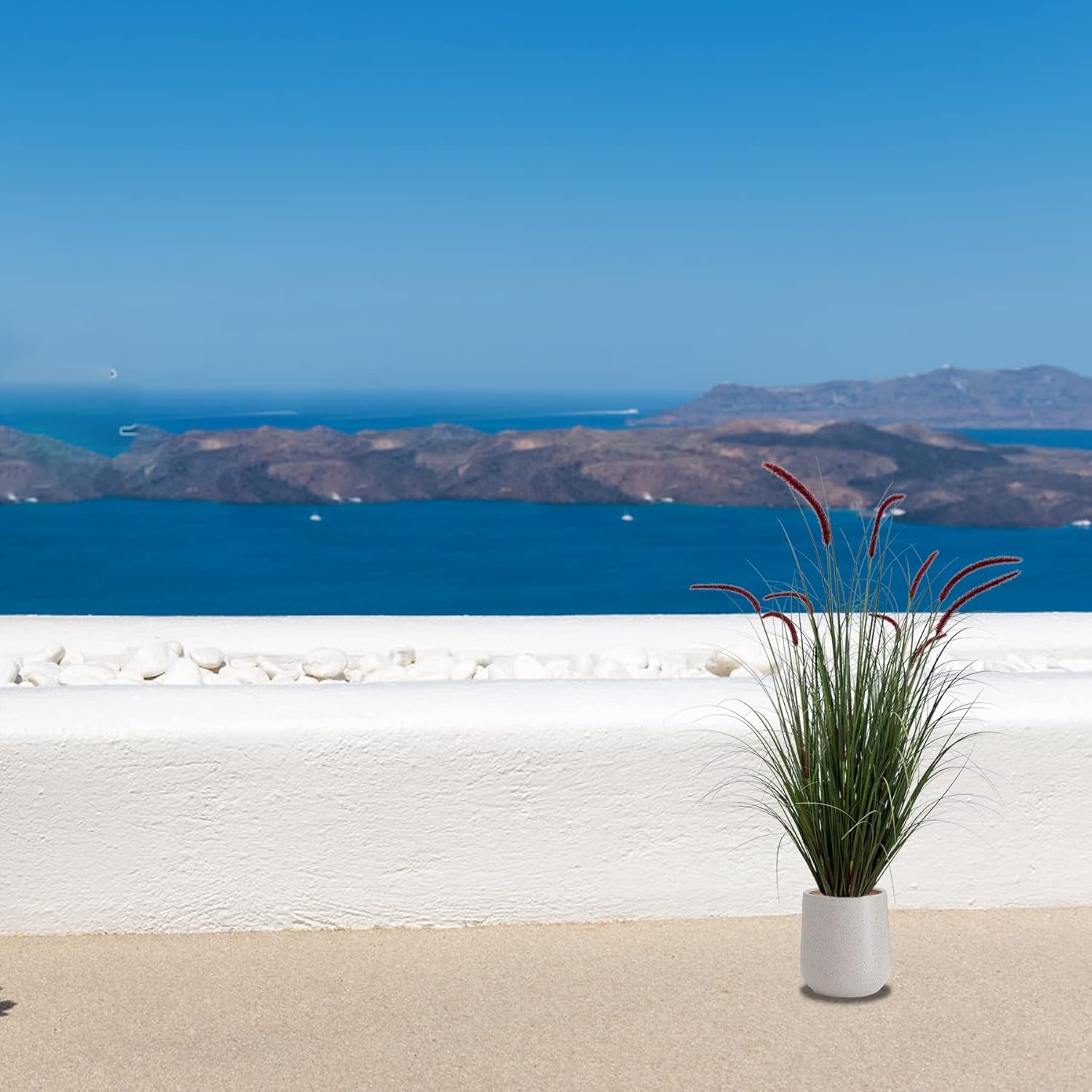 - 2.Made of PVC material, our artificial grass plants will neither wither nor fade and no odor, lifelike as the real plant. The flower and grass pots are strong and durable.