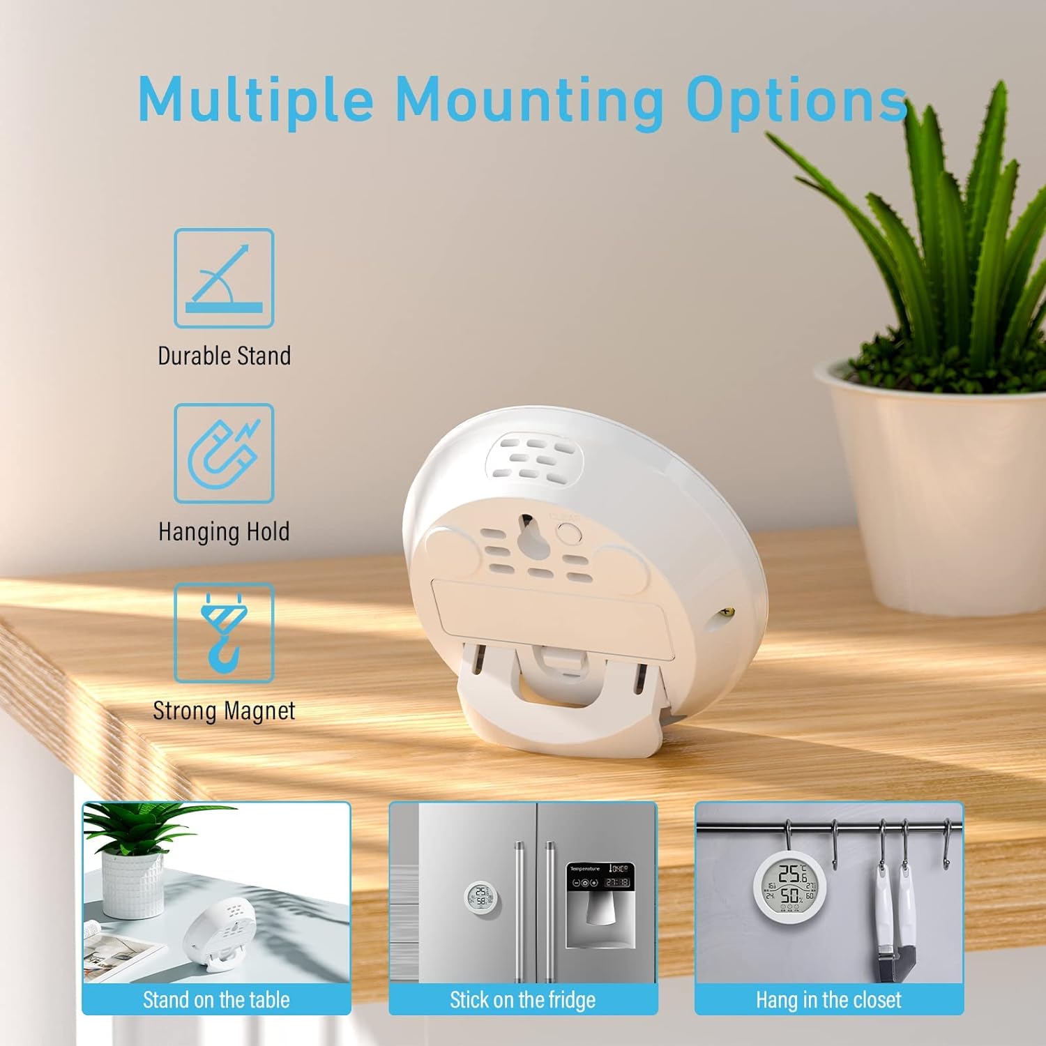 - 〖3 Ways to Install〗 Our digital humidity monitor may be mounted on a wall using a single nail, attached to the refrigerator using the built-in magnet or used on any flat surface using the stand.