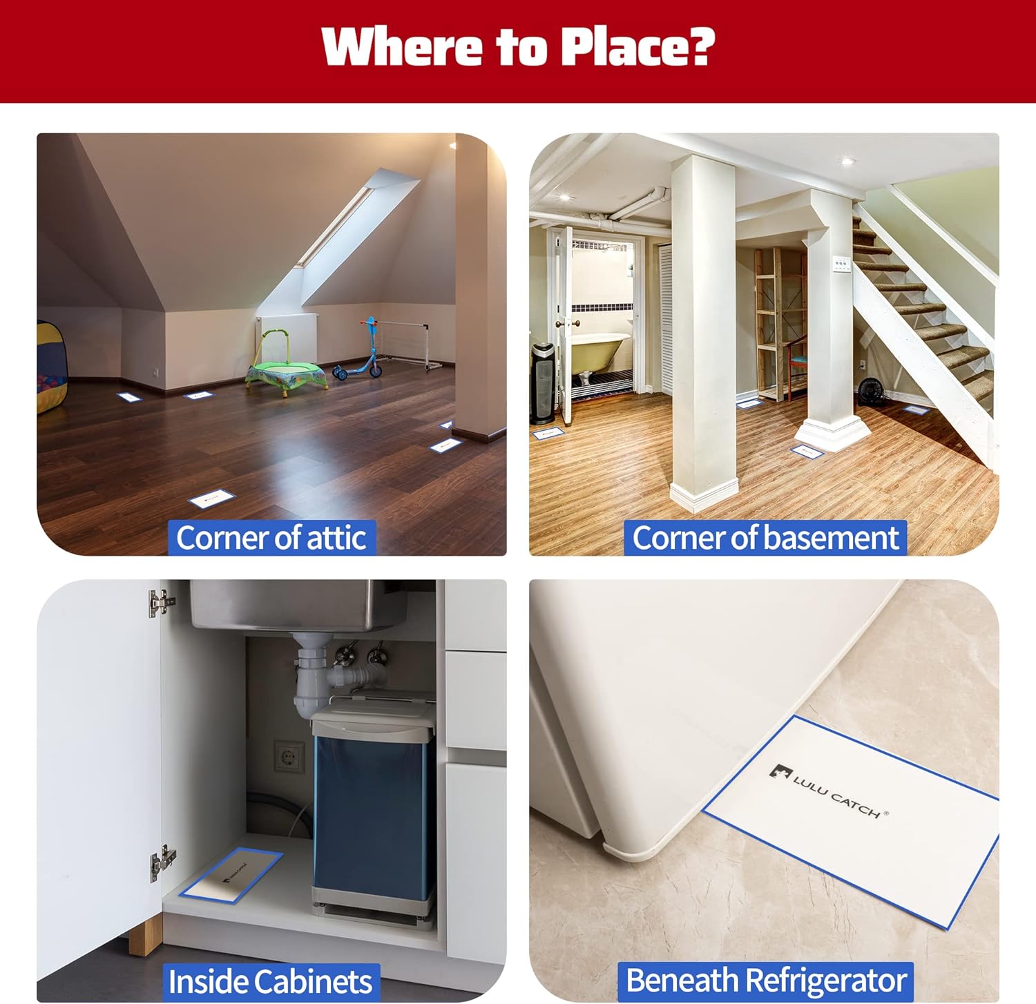 - Where to Place: We suggest you position sticky traps in the corner of attic and basement, under large kitchen appliances, TV stand, near the dryer or oven and inside cabinets, garages, fireplaces, underneath & behind furniture or other crickets runways. If glue boards trap few crickets in a place, we recommend you change locations and try again. Replace when full.