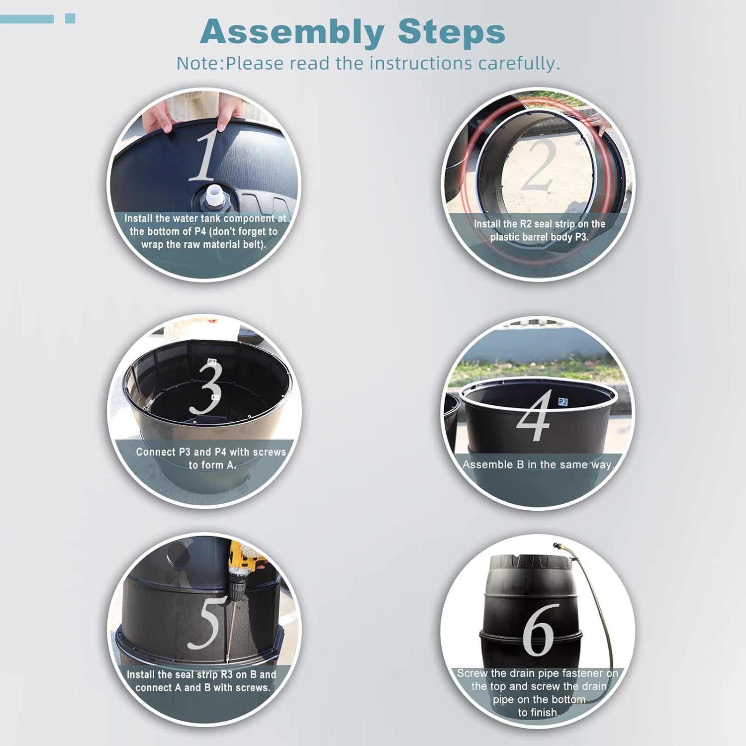 SQUEEZE master 50 Gallon Rainwater Collection Barrel Without Stand-BPA Free Home Rain Catcher with Water Diverter, Outlet Hose-Flatback Designed Water Storage Collection Barrel for Gardens and Plants