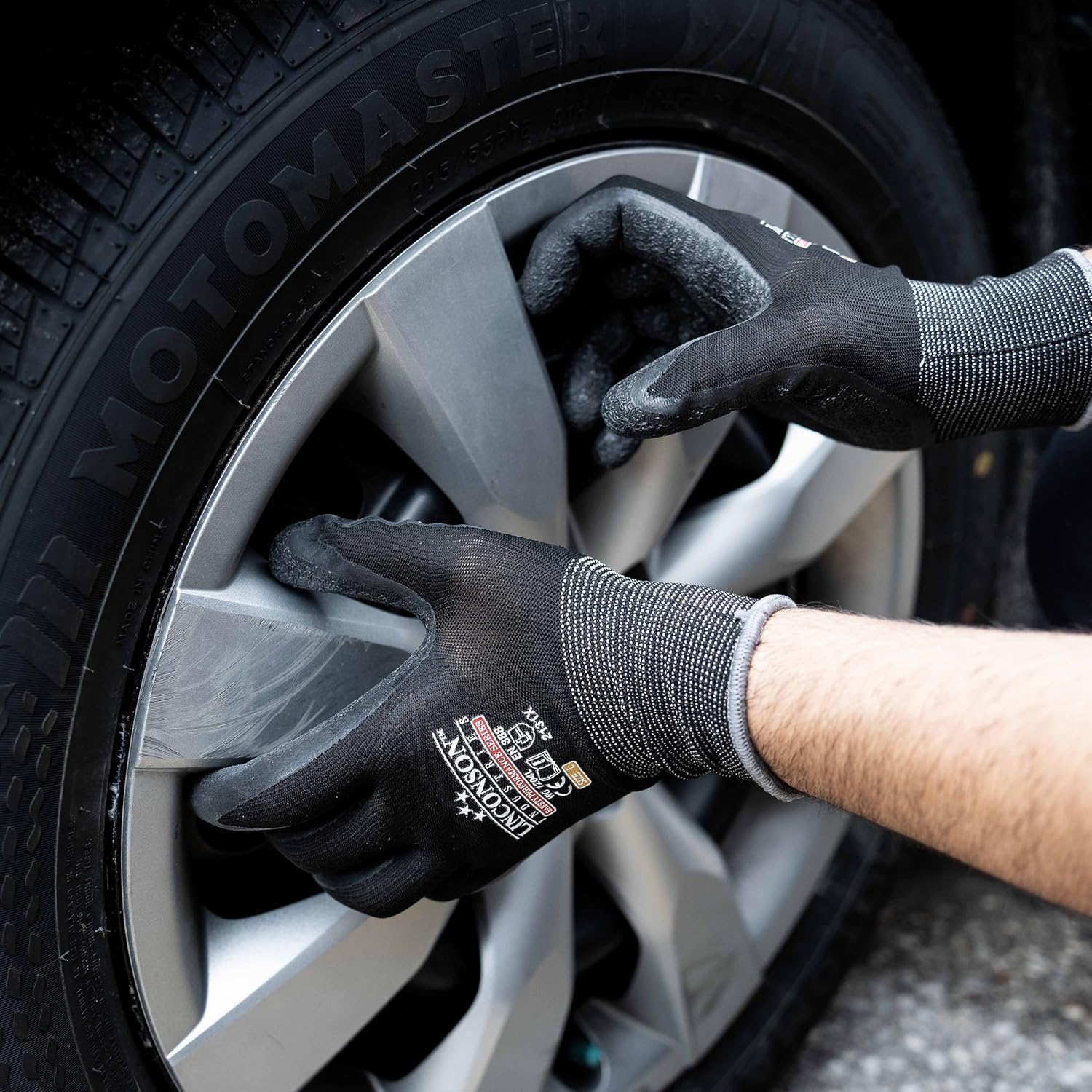 linconson 12 Pack Safety Performance Series Construction Mechanics Wrinkle Latex Work Gloves