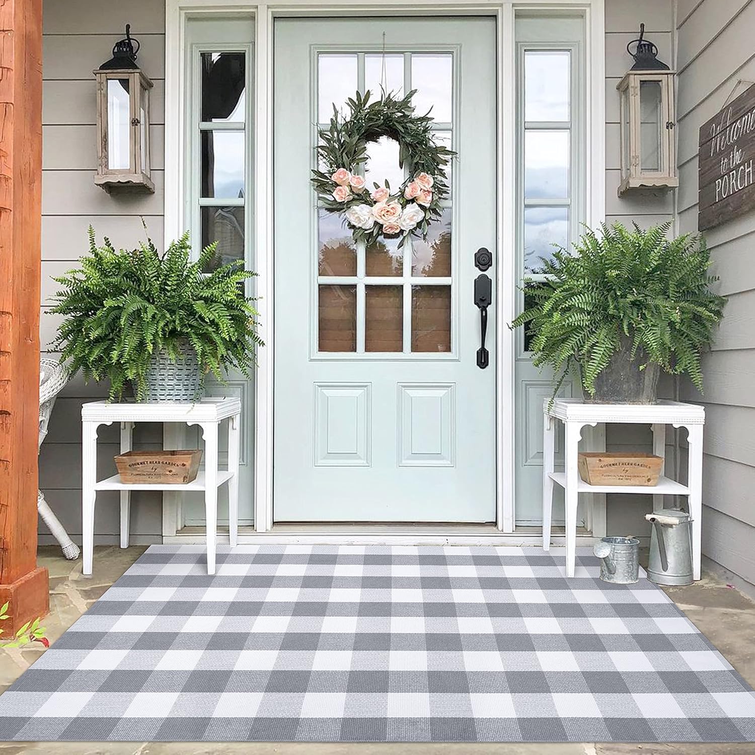 IOHOUZE Buffalo Plaid Checkered Rug 4x6 Ft Front Door Mats, Washable Area Rugs for Front Porch Decor, Spring Summer Welcome Mats Outdoor, Gray White Rug for Farmhouse/Entryway/Home Entrance