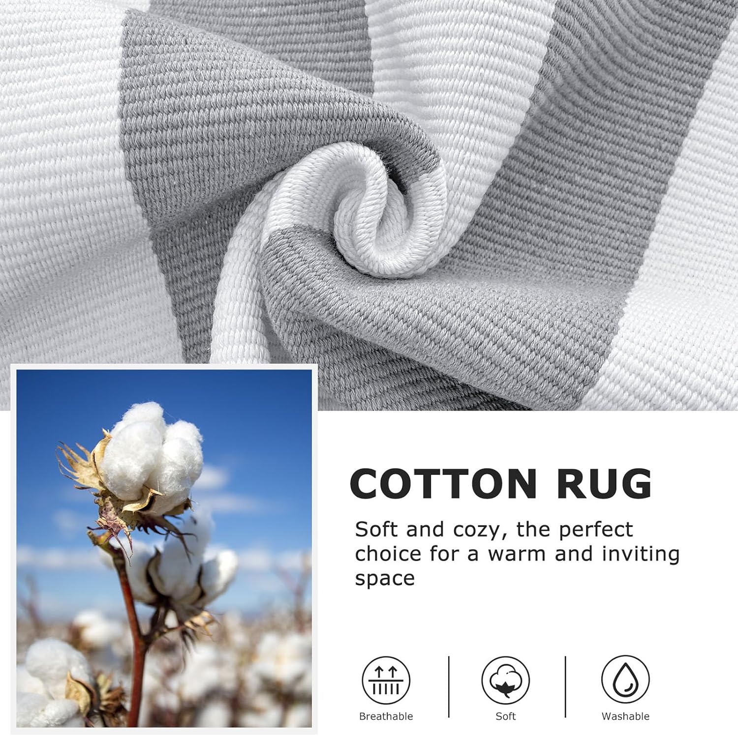 - Soft Cotton Blend Material: This striped rug is made from 0.23 inches thick cotton blend fabric, offering excellent water absorption, breathability, and durability