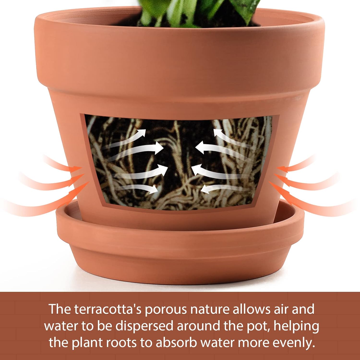 - Terracotta Pots: Terracotta plant pots features highly drained, breathable. It allows air and water to disperse quickly around the pot, promoting water absorption by roots. Great for fragile plants, or those that dislike wet conditions