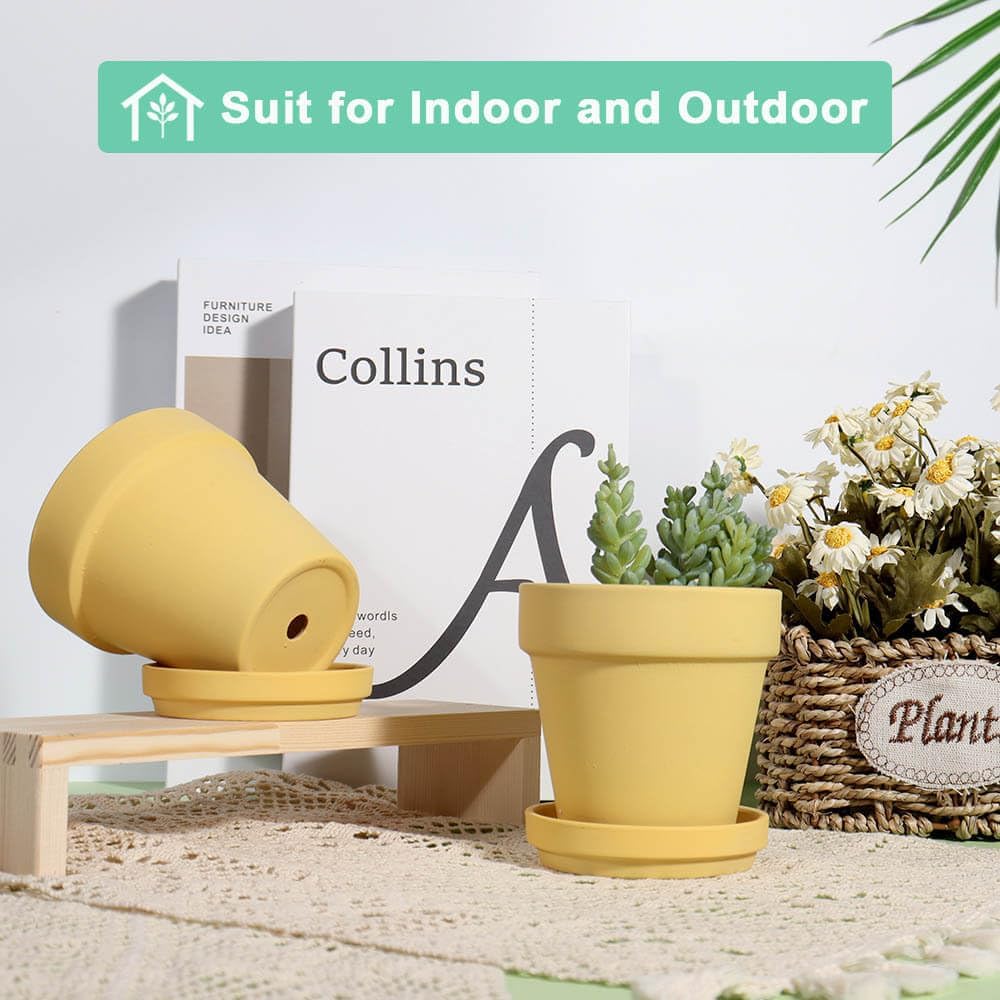 vensovo 6 Inch Yellow Terracotta & Clay Pots for Plant with Saucer - 4 Pack Medium Terra Cotta Planter with Drainage Hole, Flowerpot for Indoor Outdoor Plants, Crafts, Wedding Favor