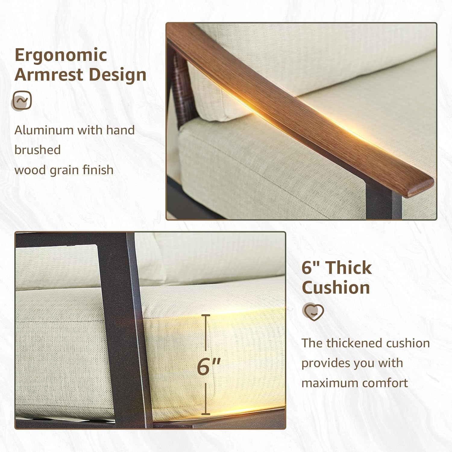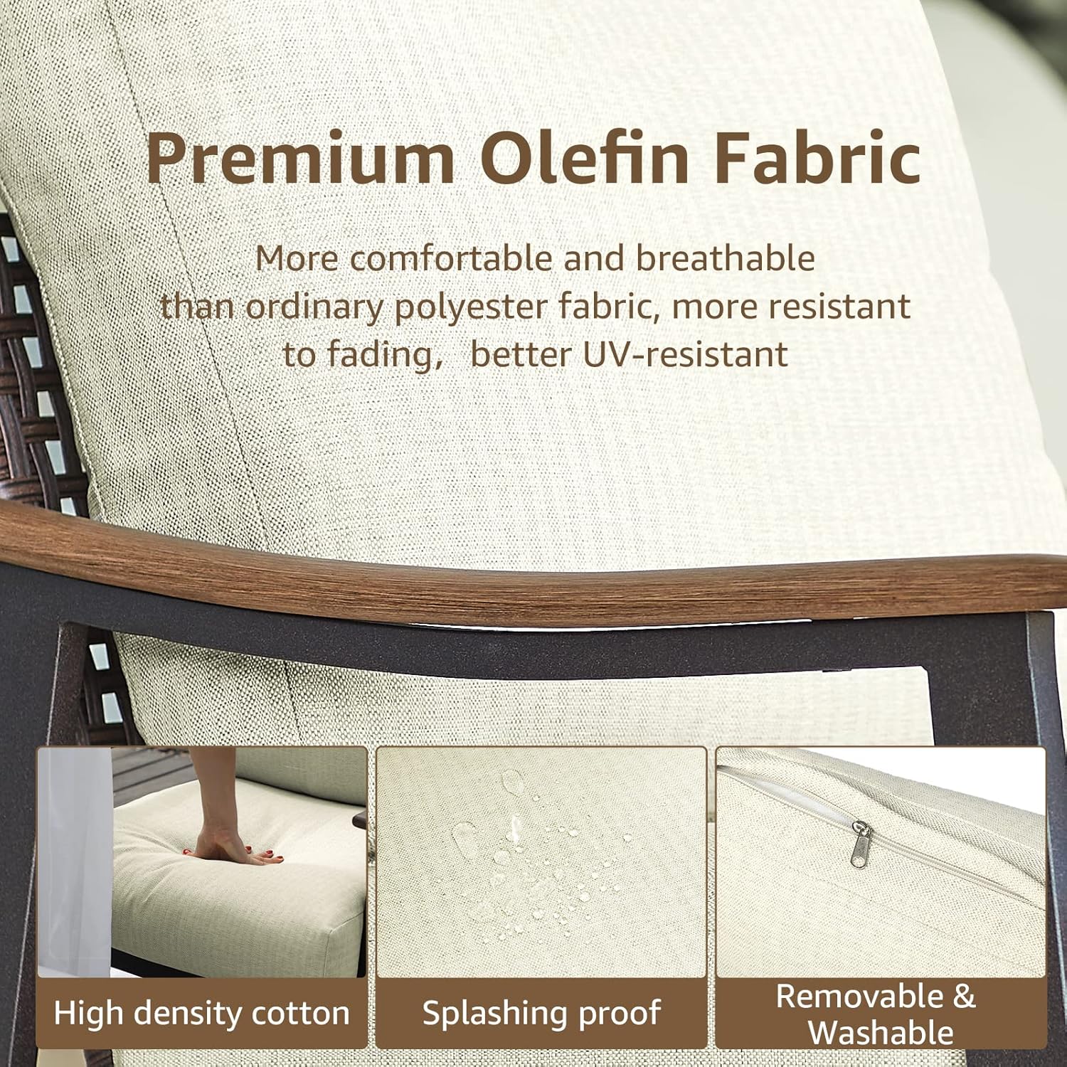 - Special Feature : 6 inch seat cushion, premium olefin fabric, removable cushion covers, wicker backrest, wood grain aluminum armrest 6 inch seat cushion, premium olefin fabric, removable cushion covers, wicker backrest, wood grain aluminum armrest