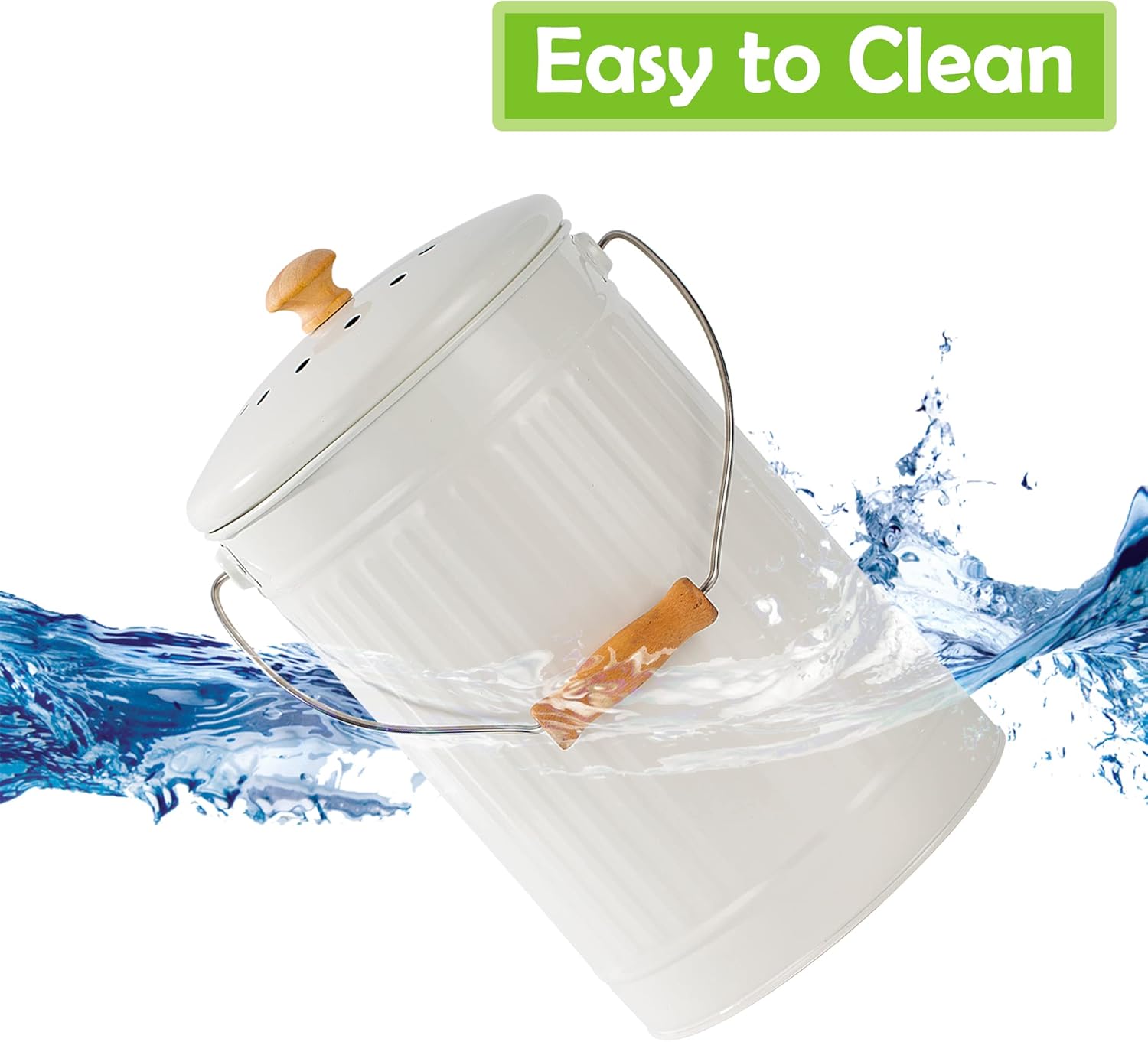 - ๐VERY EASY TO CLEAN: The smooth lacquer finish is very easy to clean, just wash the compost bin with warm soapy water and gently wipe the lid with a damp cloth.