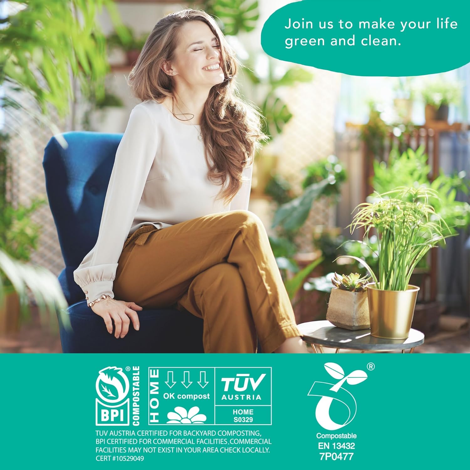 Compostable Trash Bags 13 Gallon, Drawstring Bin Bags, Heavy Duty Waste Bags, Extra Thick, Certified US BPI ASTM D6400, 49.2 Liter, 30 Counts