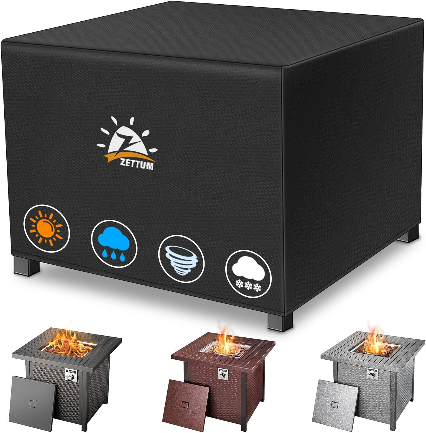 - | Easy to Put On with Great Protection | - Designed by our Firepit experts team, Zettum patio fire pit covers for outside are very easy to put on and put off. With the cover on your Firepit equipment, no more worry about the sunlight, rain, snow, wind, dust, resin, leaves, debris and bird droppings etc. Zettum will be the tough protector of your fire pits!