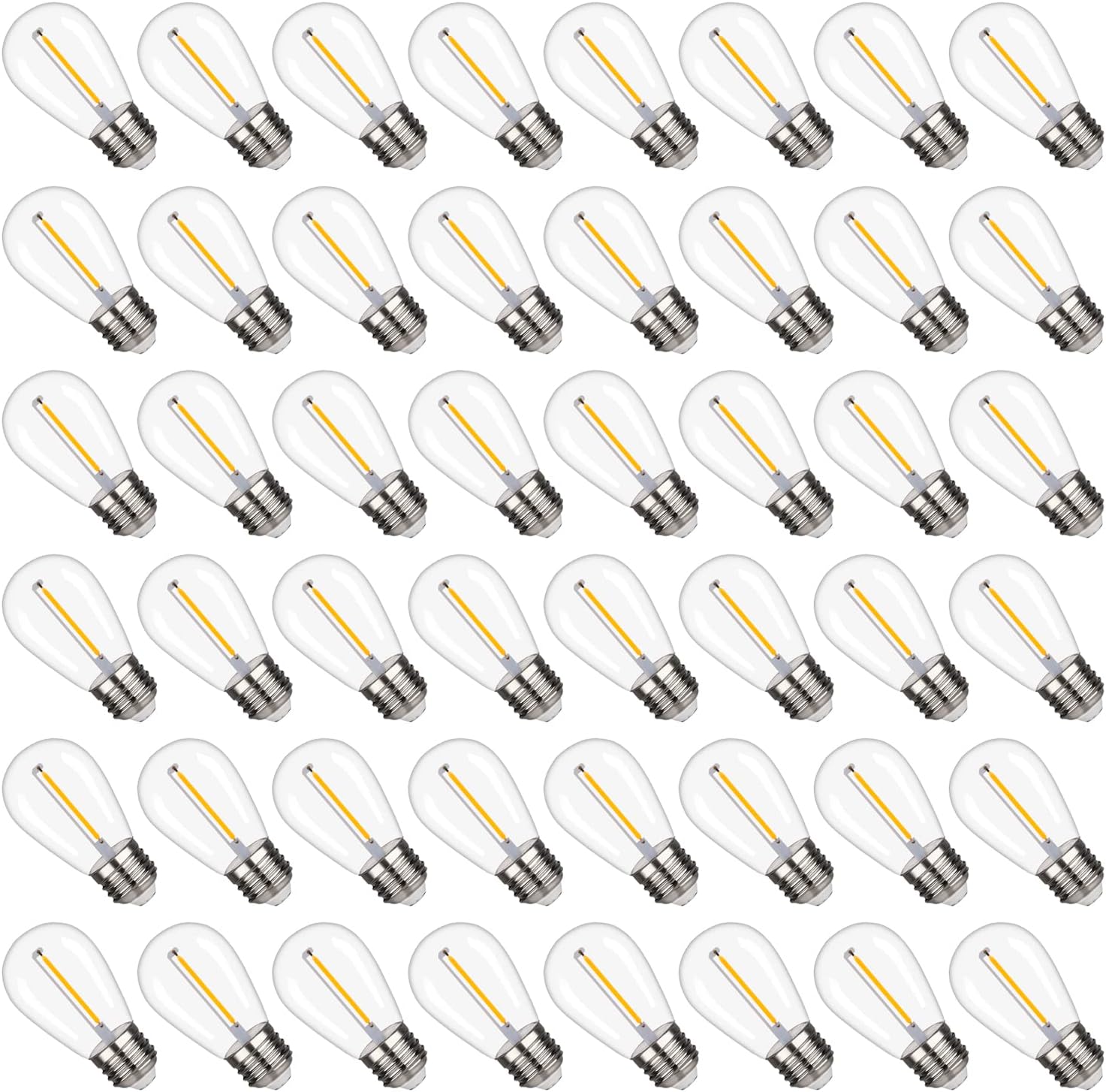 S14 Replacement LED Light Bulbs, Shatterproof & Waterproof 1W S14 LED Bulbs, E26 Base Patio Edison LED Light Bulbs for Outdoor String Lights , Warm White 2200K Plastic 70ML Non-Dimmable 48 Pack