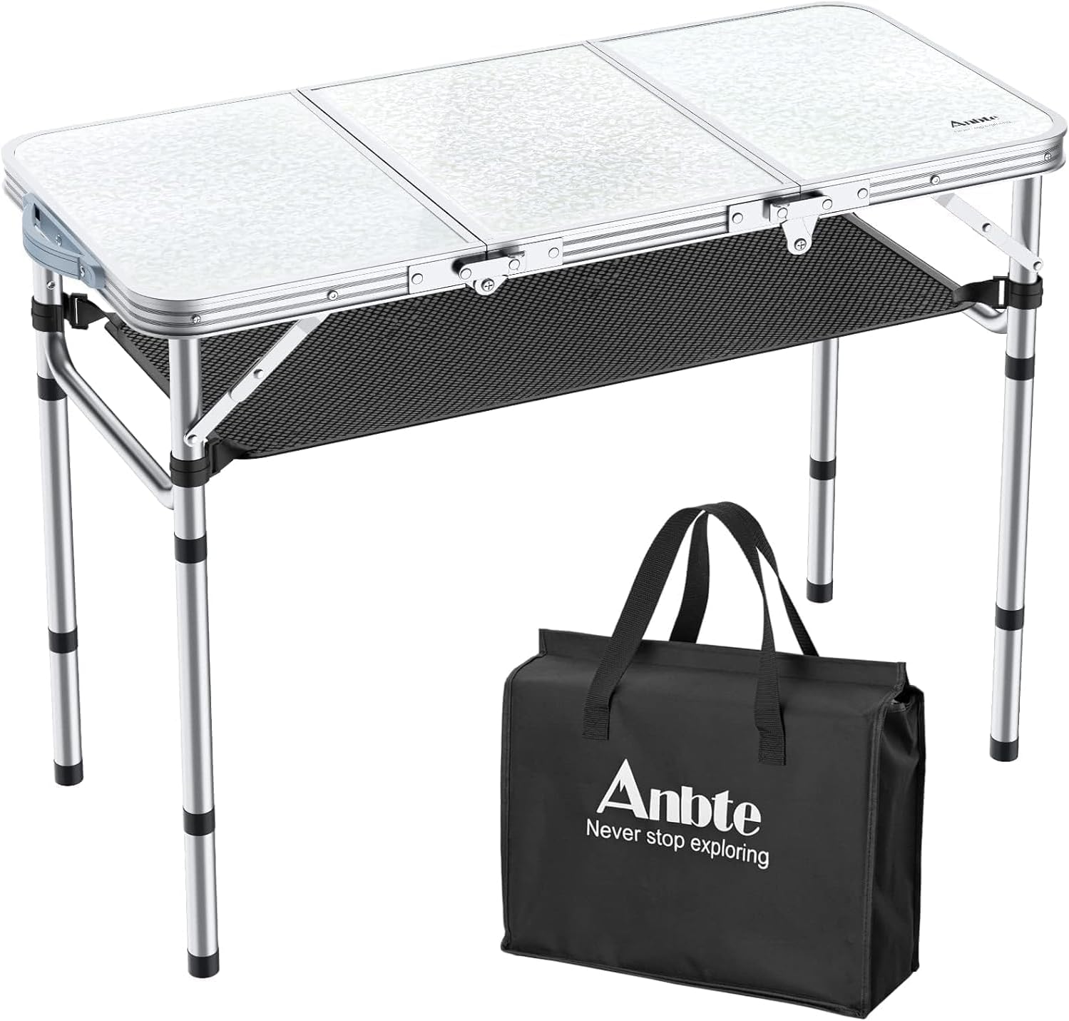 - Portable & Easy to Install and Fold up: This 3ft folding table comes with carry handles and a storage bag, making it very portable. Set up within 1 minute and folds up into a briefcase sized package for easy transport and space-saving, great to store in your car, RV, river rafts, motorcycle rear seats