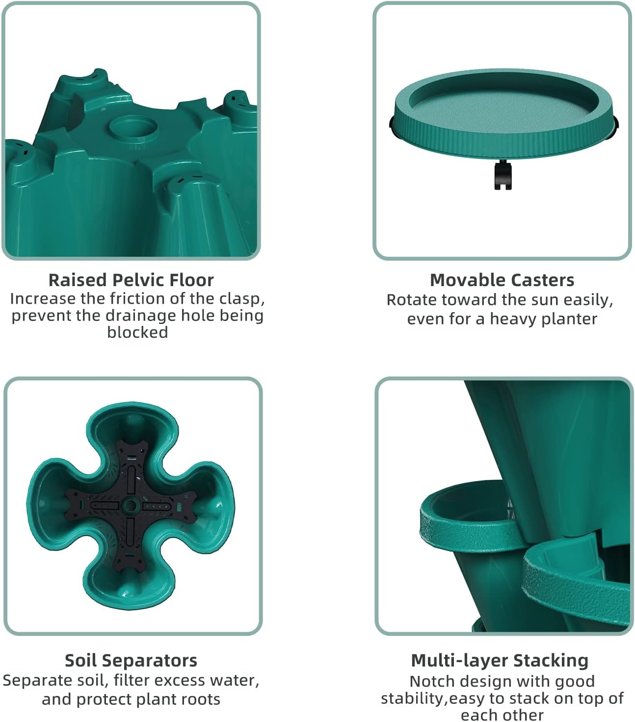 Strawberry Stackable Planters, Vertical Tower Garden, 6 Tiered Stacking Herb Vegetable Planters with Movable Casters and Bottom Saucer Indoor and Outdoor