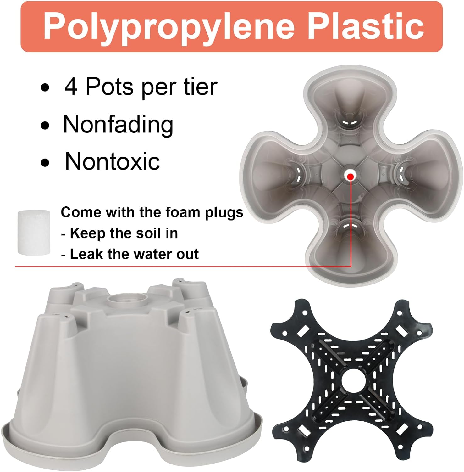 - SOIL HOLDING BOARD - Each tier has a board that holds soil while allowing water to drain down.