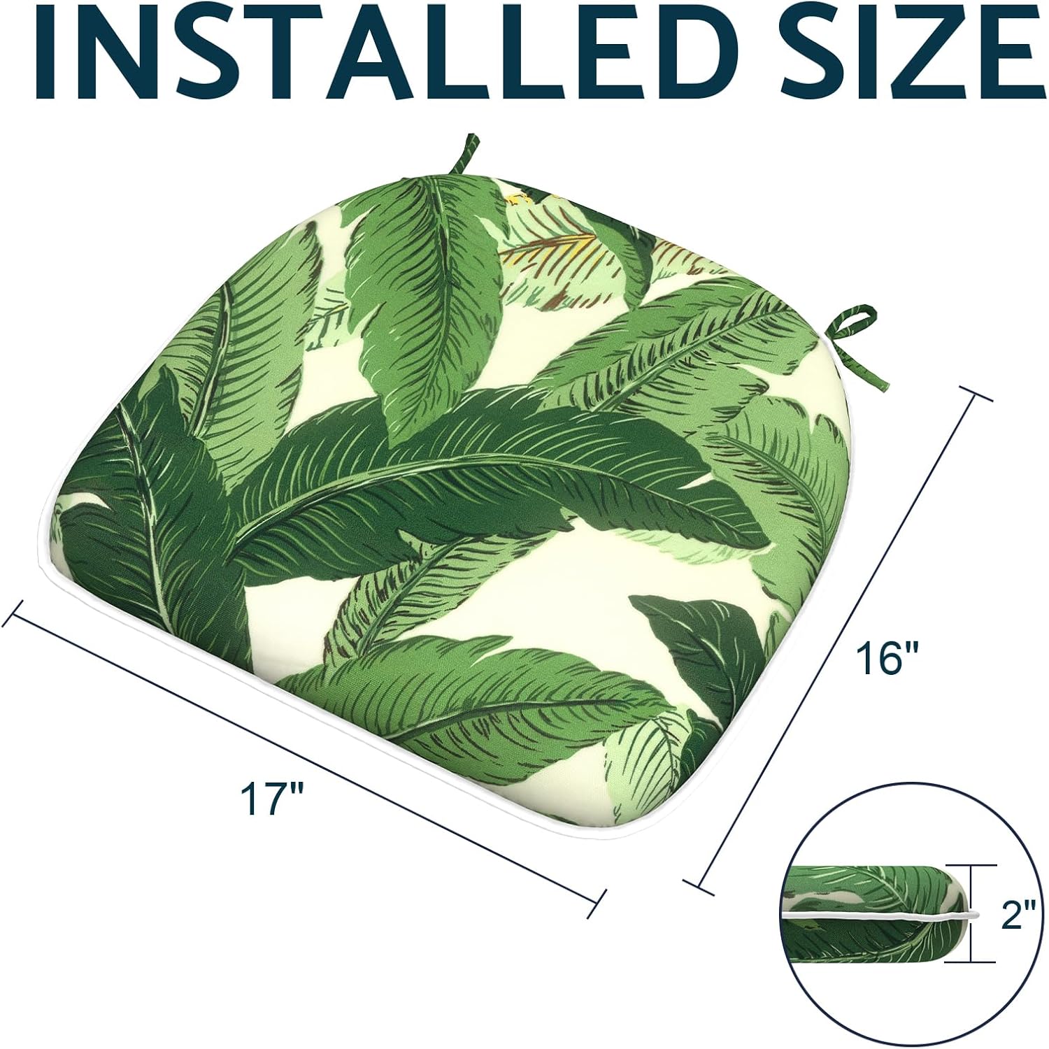 Indoor/Outdoor Chair Cushions 16x17 Inch, Patio Chair Cushions with Ties, All Weather Seat Cushions for Patio Furniture Home Garden Chair Use, Set of 4, Swaying Palms Green