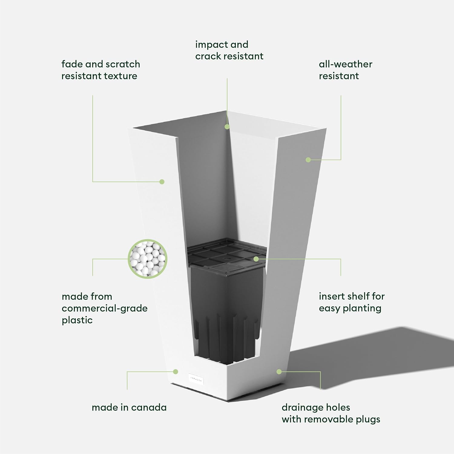 - GARDEN DECOR: Decorate your space with the Veradek Taper planter; Whether you use it as a patio, entrance or railing accent, this strong and sturdy yet lightweight contemporary garden container is the perfect fit with its sharp and modern appeal