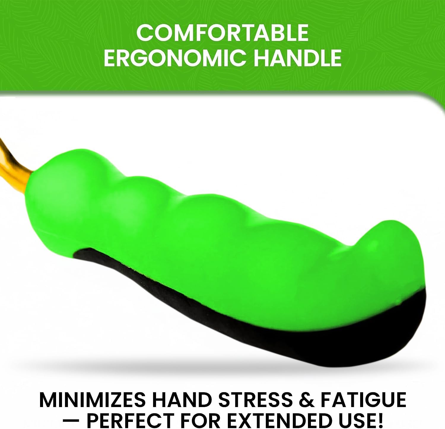 - COMFORTABLE ERGONOMIC HANDLE - Large and Thick with Thumb Rest on top and Finger Grooves on bottom. Well Designed for those in search of an Agreeable Grip that Minimizes Hand Stress and Fatigue.
