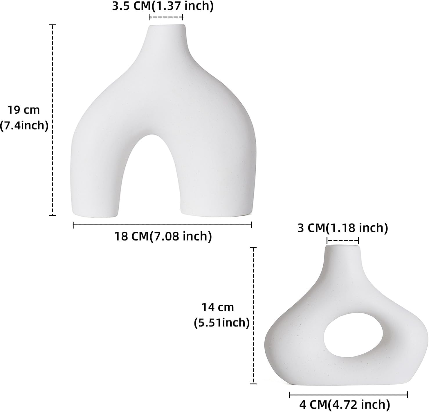 CEMABT White Ceramic Vase Set of 2 for Modern Minimalist Bohemian Decor,Round Matte Donut Vases for Pampas Grass-Perfect for Living Room, Dining Table, Office Bedroom Shelf Decor Entryway, Console