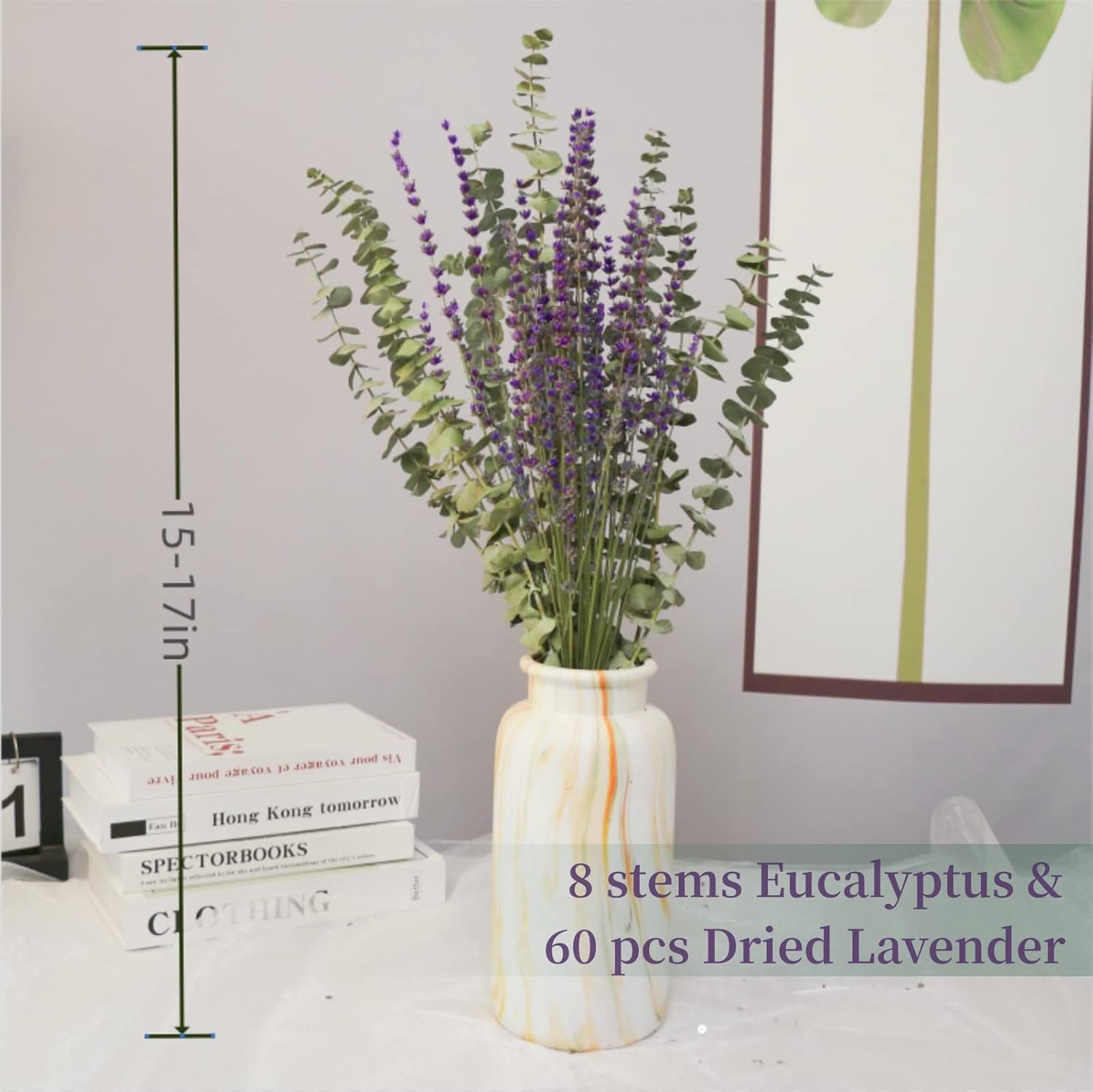 - Pure natural: This package contains 8 eucalyptus leaves and 60 lavender leaves ,Length about 15 "-17".please allow slight differences in size and quantity as it is a natural plant and measured and packaged by hand. The package is equipped with a rope for easy hanging in the bathroom. Fallen and crushed eucalyptus leaves and lavender can be made into scented sachets
