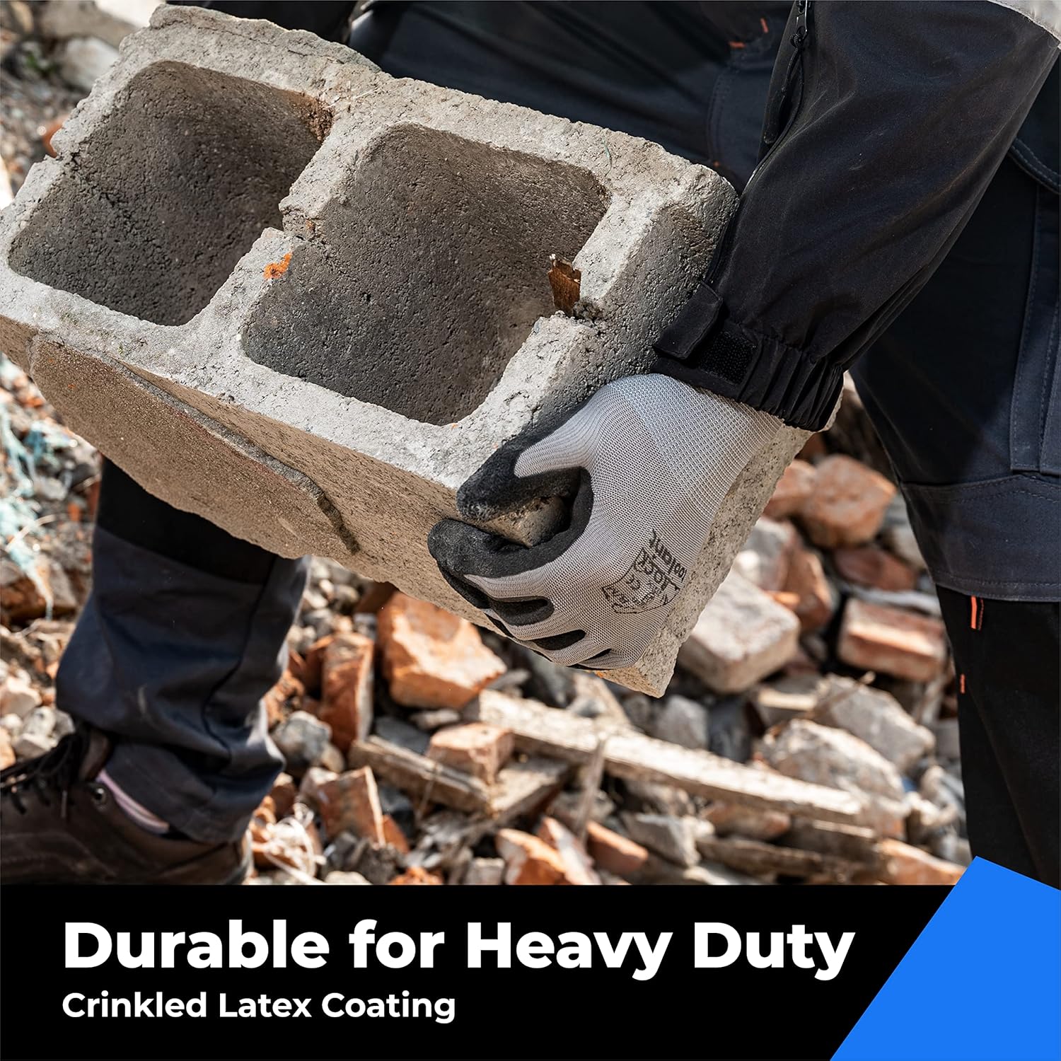 - 【Superior Grip】The unique crinkle latex coating offers superior friction for a secure hold on tools and materials, even in dry and slightly damp environments. This is a crucial feature for workers who handle heavy and bulky materials, as it can help prevent accidents and injuries on the job.