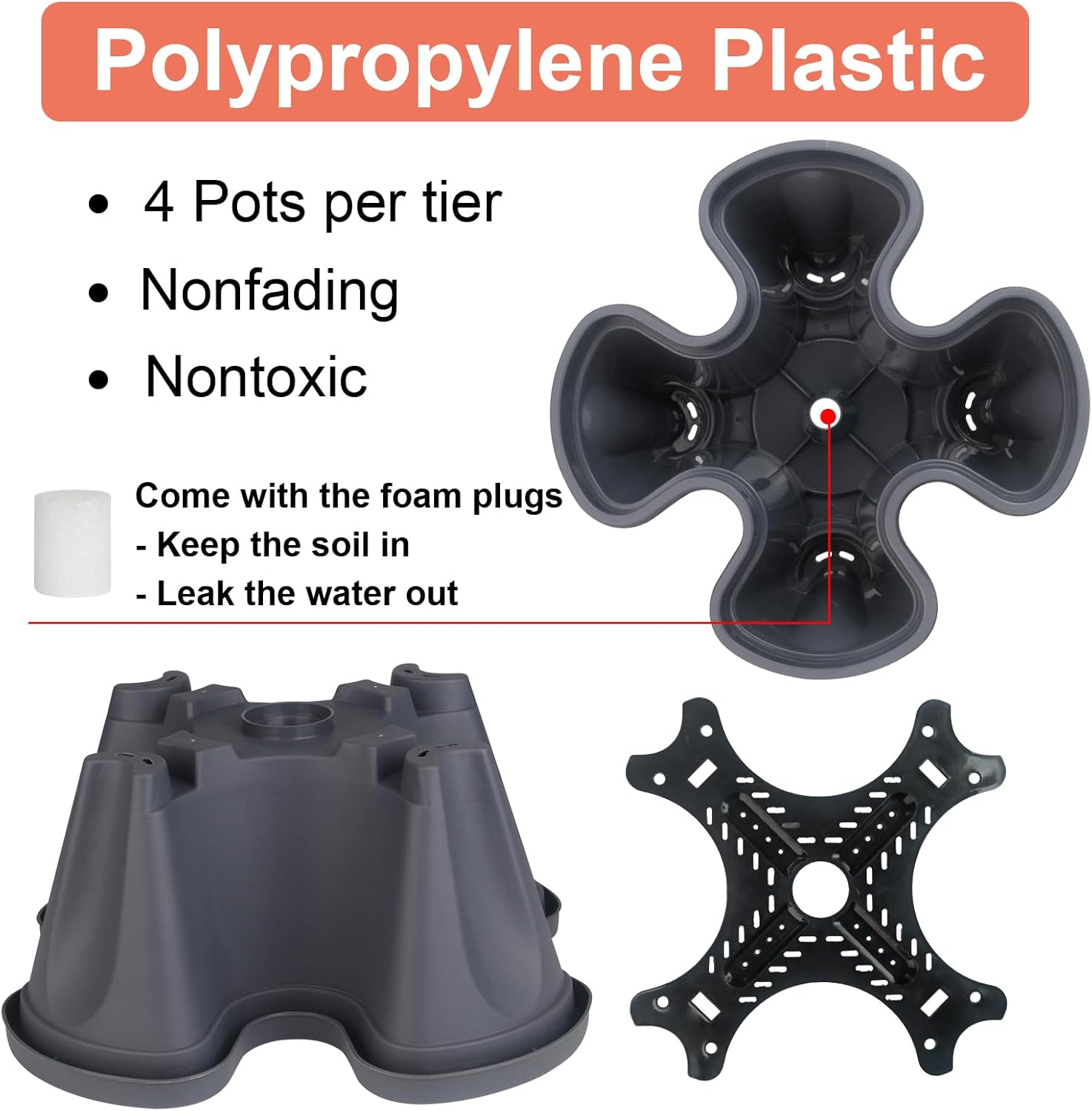 DUNCHATY Stackable Planter, Vertical Garden Planter with Wheels and Tools, Self Watering Strawberry Indoor/Outdoor 5 Tier Tower Herb for Growing Vegetables Succulents, Dark Gray