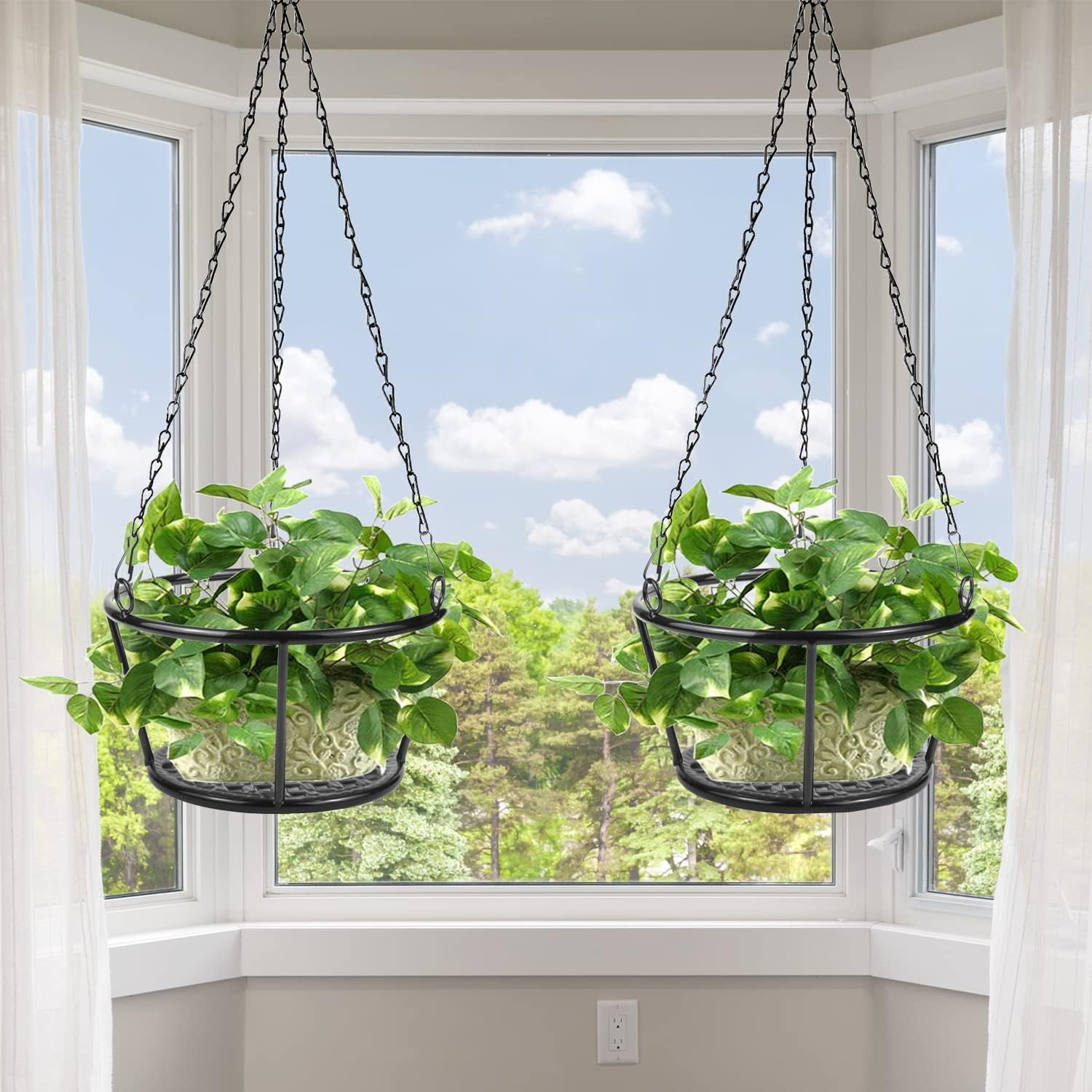 ARTORA 2 Pack Metal Plant Hanger, Modern Plant Hanging Basket Decorative Black Plant Pot Holder Flower Planter Hanging Chain for Balcony Porch Indoor Outdoor Home Decor (Black 2PCS)