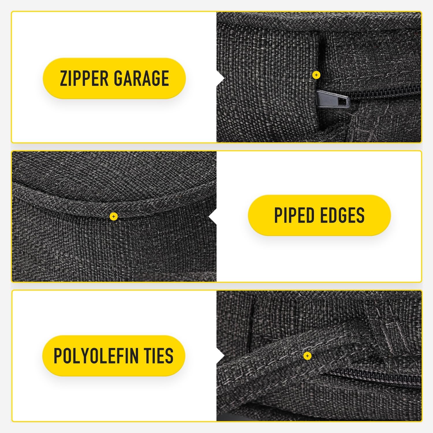 - 【Invisible Zipper Garage | Removable Cover with Ties】Zippers lock to keep a tight closure, stored in protective garages to prevent scratching your patio furniture when closed and offer a seamless look. Removable cover with non slip ties, customizable fit to keep your cushion where you want it.
