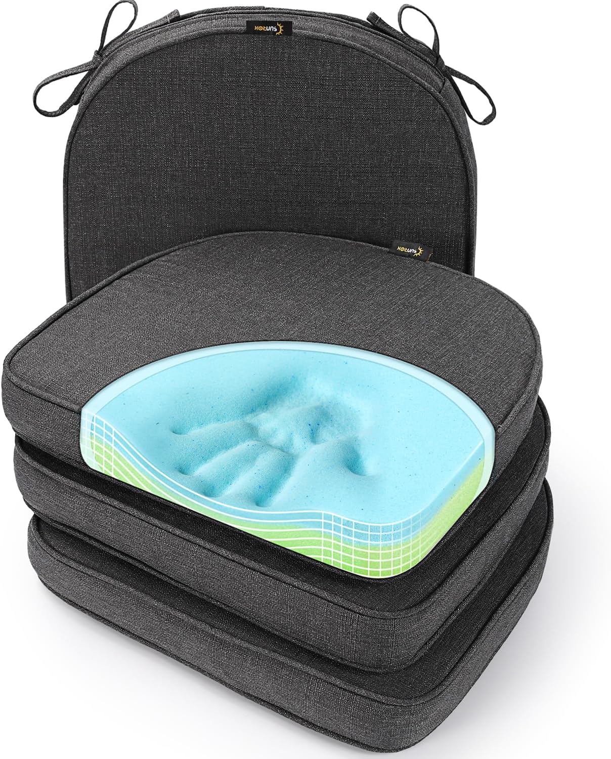 SUNROX Gel Memory Foam Chair Cushions, FadeShield Water-, Stain-Resistant Durable Reversible Seat Cushion Pads with Ties for Indoor/Outdoor Kitchen Dining Office, 19"x19", Set of 4, Midnight