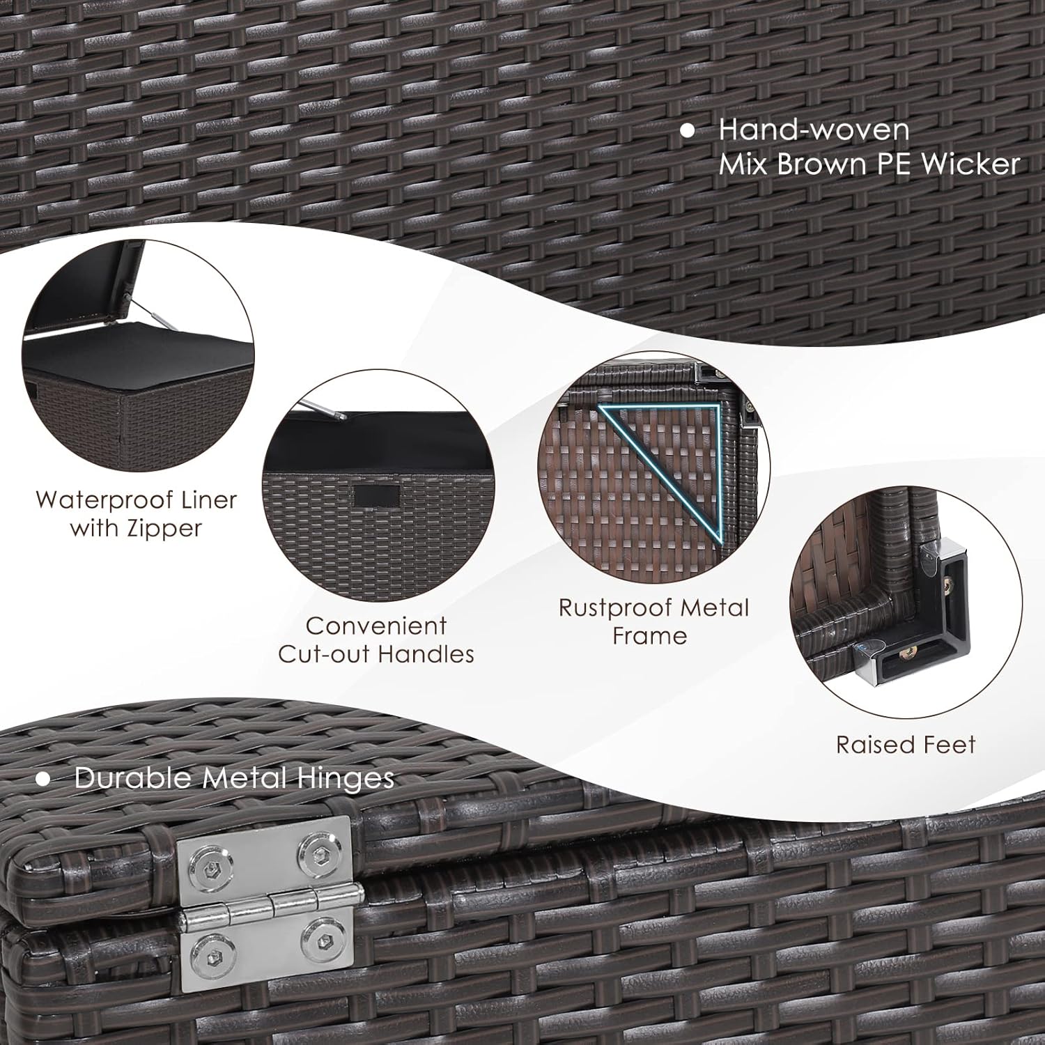 - Hand-Woven Wicker & Raised Feet: The hand-woven mix brown PE wicker is colorfast and sun-protective to endow this organizers and storage box with better outdoor performance. Besides, the sturdy and rustproof metal frame ensures extra outdoor durability. And the raised feet prevent the bottom from damage. Note: please always keep this product dry.
