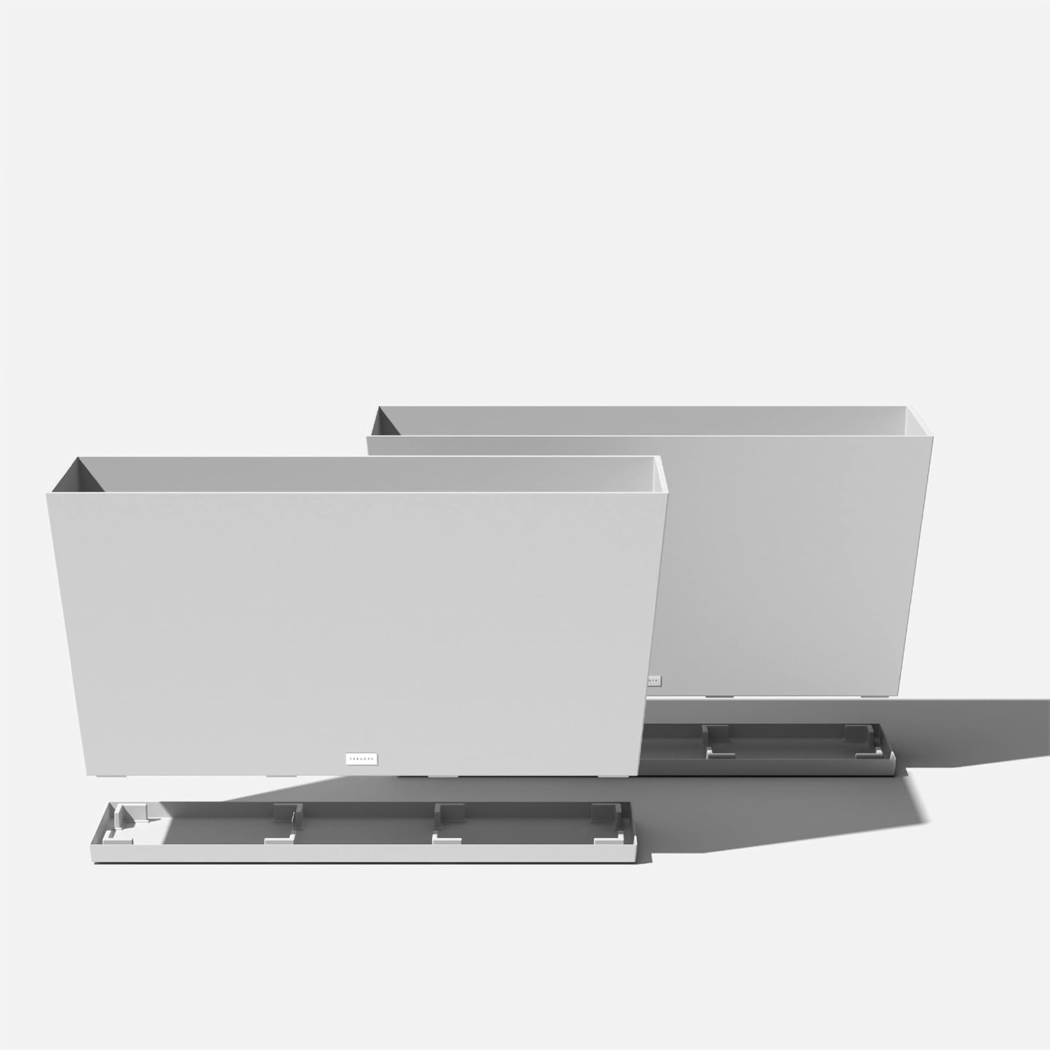 Veradek Midori Long Trough Planter (White, 39 inch - 2 Pack with 2 Saucer Trays)