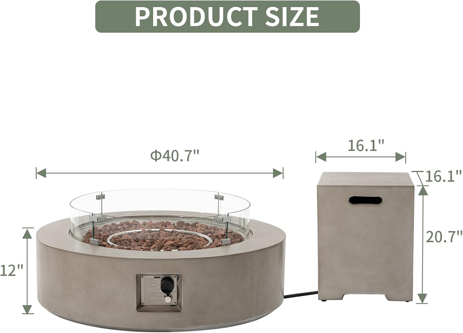 - 🔥 【 Spacial Economy】: Large enough coffee table surface to set your coffee or nightcap. The unit has a 40.5-inch diameter and just 12-inch from the ground for an almost sunken feeling. The fire bowl itself is 30-inch round. The entire piece weighs only 86 lbs and can easily be picked up from the side handles by two people. It fits a 20lb propane tank which should be put outside the fire table.