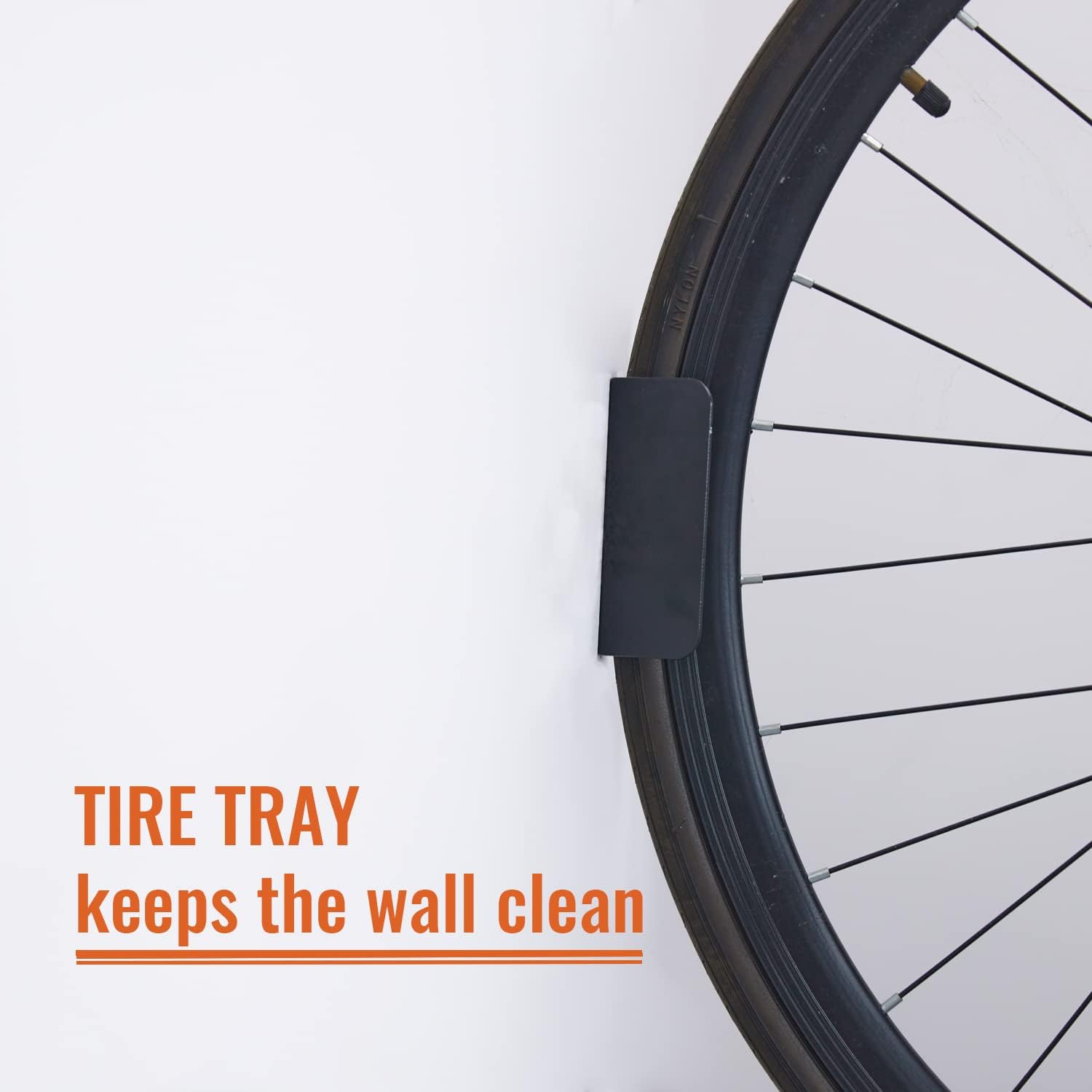 - TIRE TRAY: The bike rack's tire tray keeps bikes stable. It prevents marks on walls