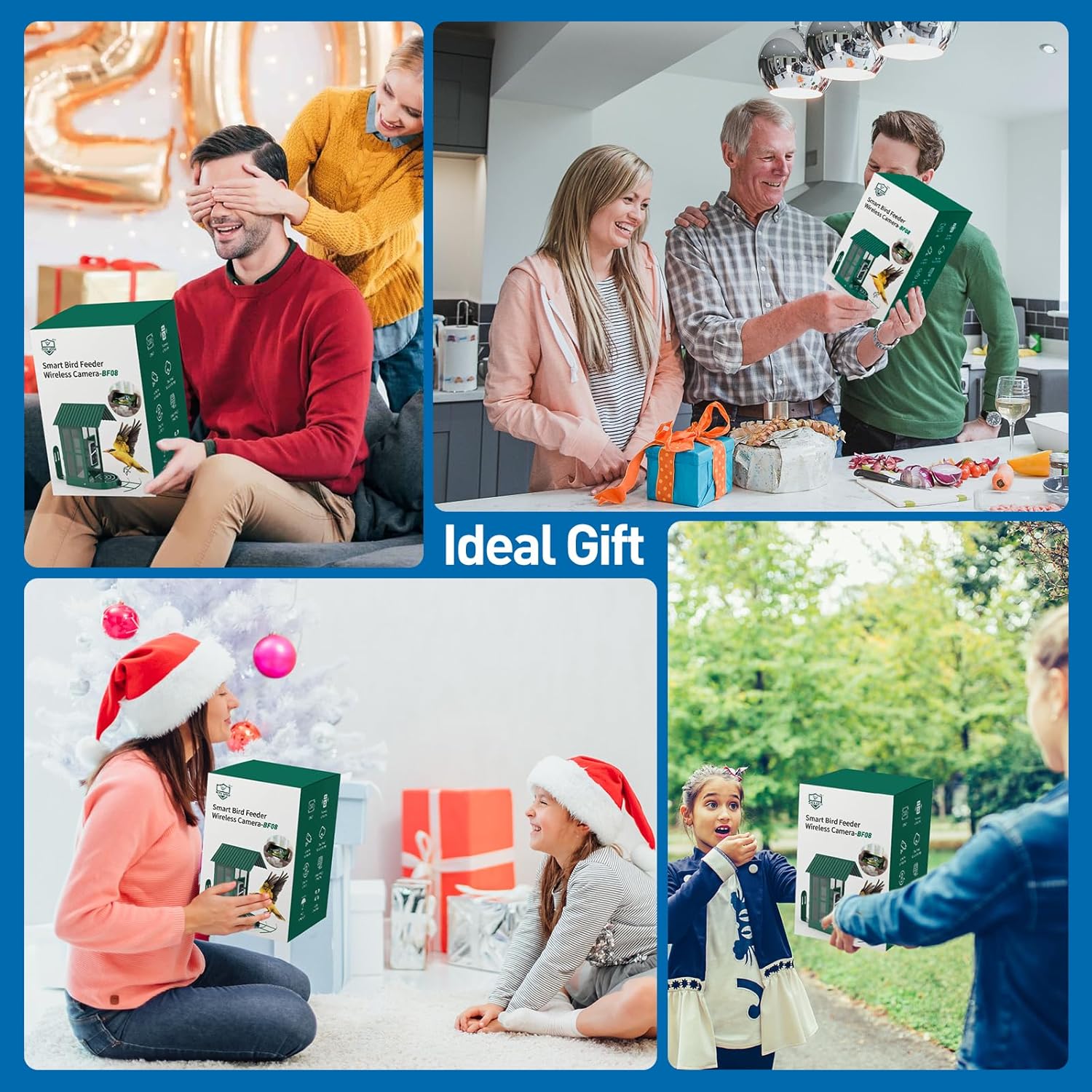 Bird Feeder with Camera with AI Identify Species, Wild Bird Watching, 2K Live View, Instant Arrival Alerts with 5W Solar Powered-Soliom BF08 Metal Blue