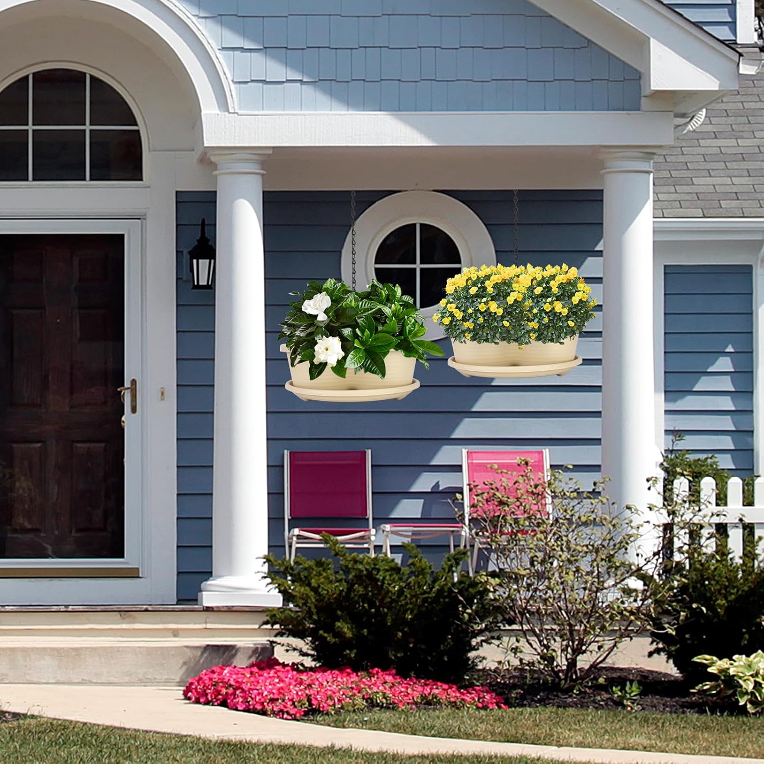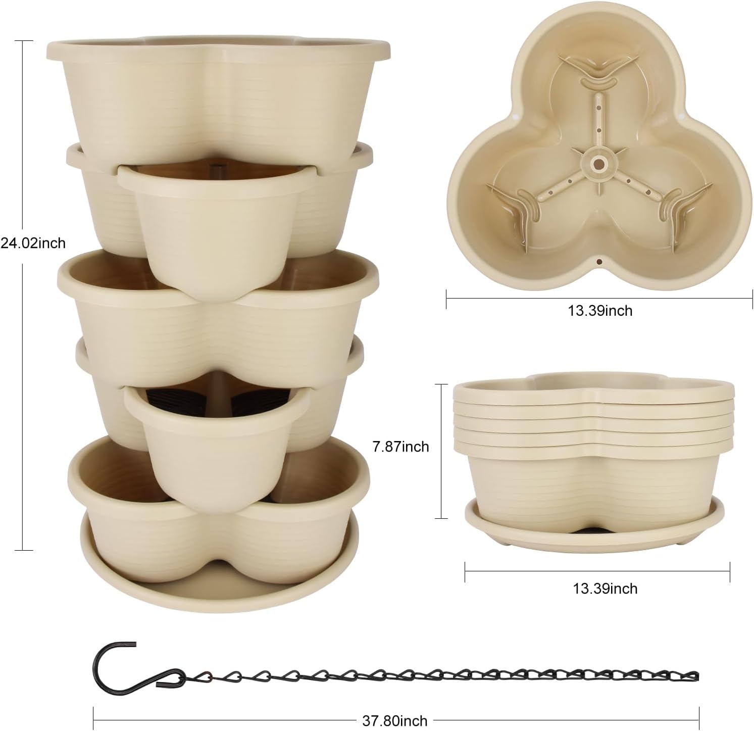 - [Hanging Planters]There is a hanging chain for hanging up the pots if you want, if you think 5 tiers with soil and plants are too heavy, you can use 2 or 3 pots stacked with bottom water collecting trays to hang them up. While the rest layers can be keep on floor or table in your house