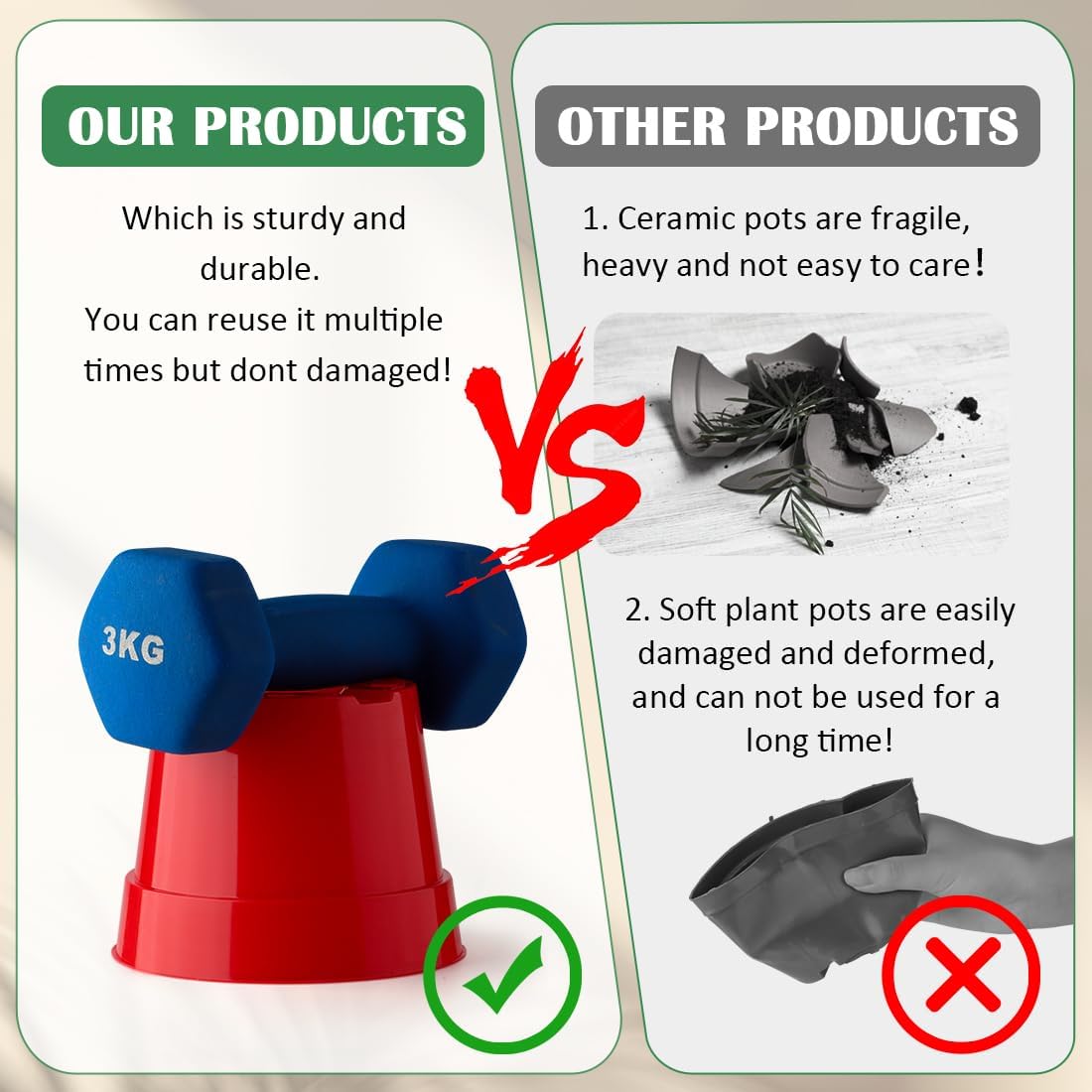 - 【Thick Pot Saucers】Thick repeat use pot saucers/dishes are included, Transparent pot trays to hold drainage water and soil.