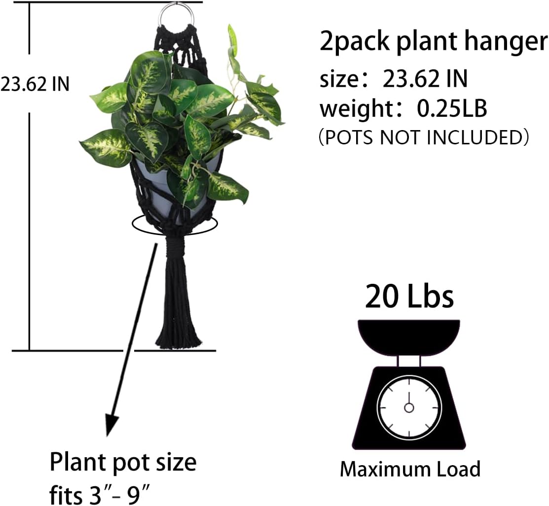 Artilady 2 Pack Black Macrame Plant Hanger Indoor - Large Hanging Planters for Wall Plants Holder Short Hademade Boho Farmhouse Rustic Home Decor