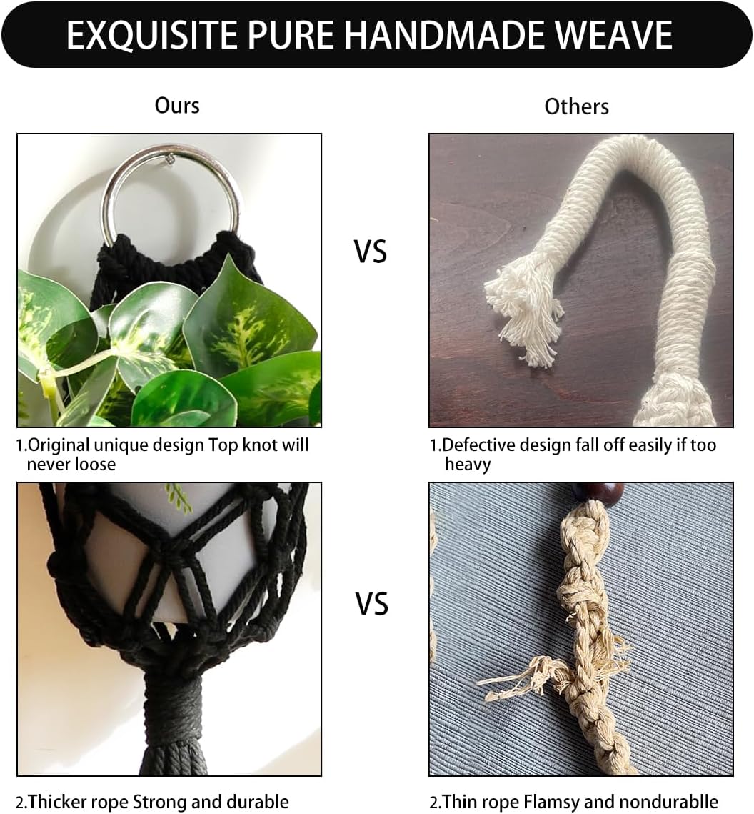 - HANDMADE WEAVING CRAFT - Our large macrame wall hanging plant holder is made of 100% natural cotton rope with tassels. It has a strong flexible woven design, sturdy, durable, washable and eco-friendly