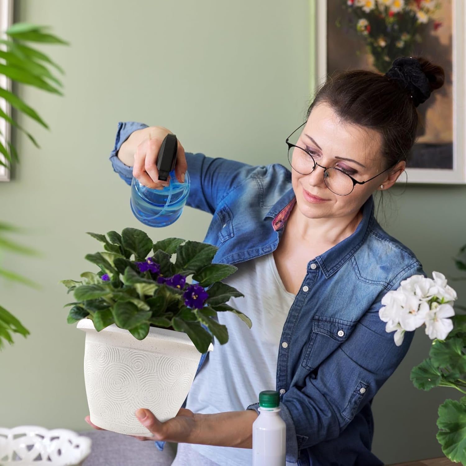 - 【Sturdy Resin Material】our white planter for indoor plant are made of sturdy recyclable plastic which can bear extreme temperature environment. Lightweight, odorless, and will never warp or break. Set of 3 pack 10 inch Solid plastic large planter pots are suitable for house plants, succulents, flowers, and cactus.
