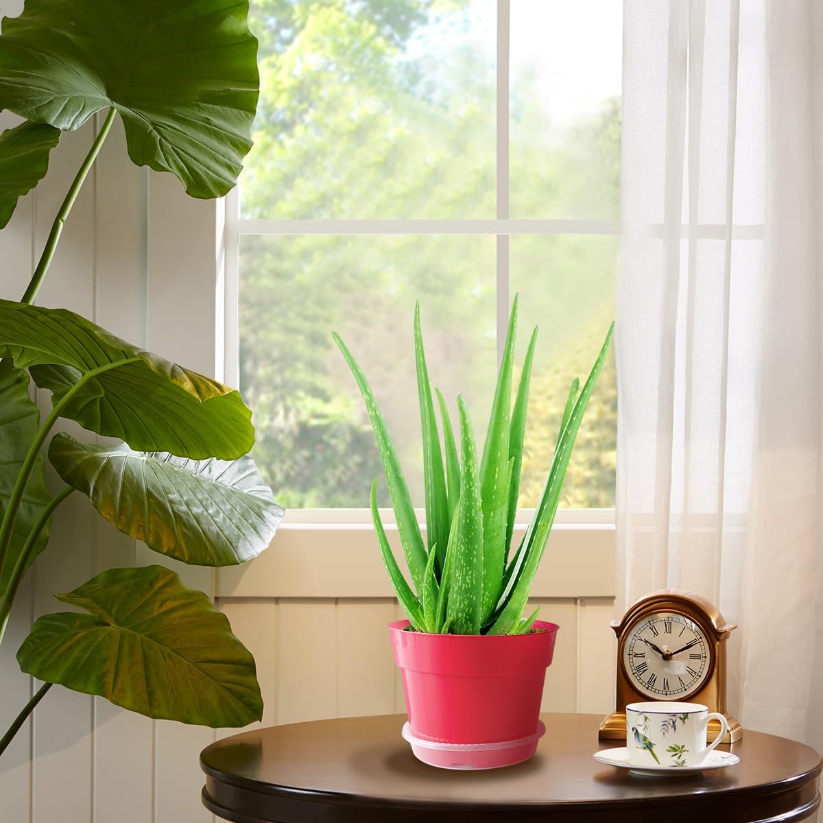 8 inch Plastic Flower Pots, Red Plant Pots 12Pack with Saucers for Indoor House Plants Growing and Decoration