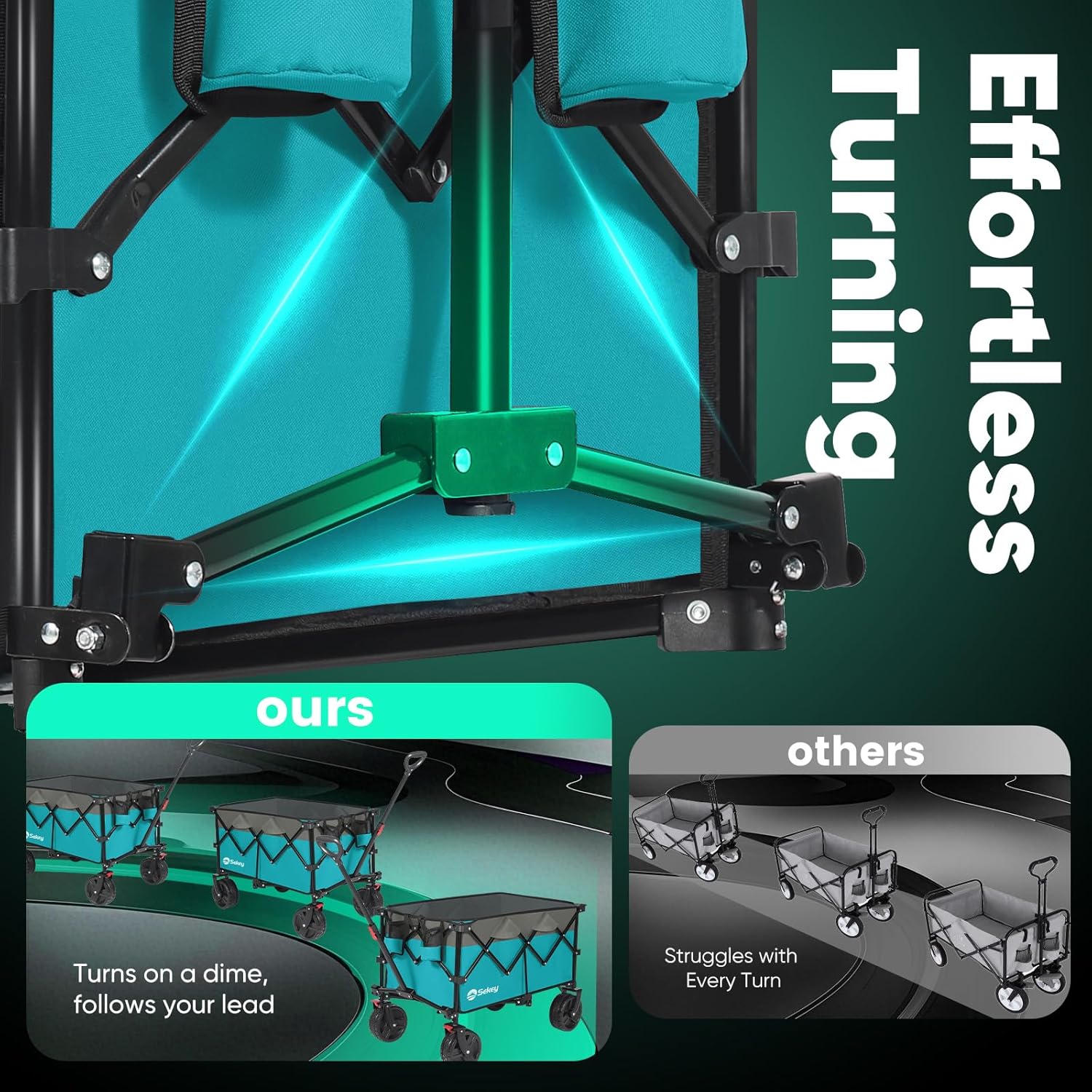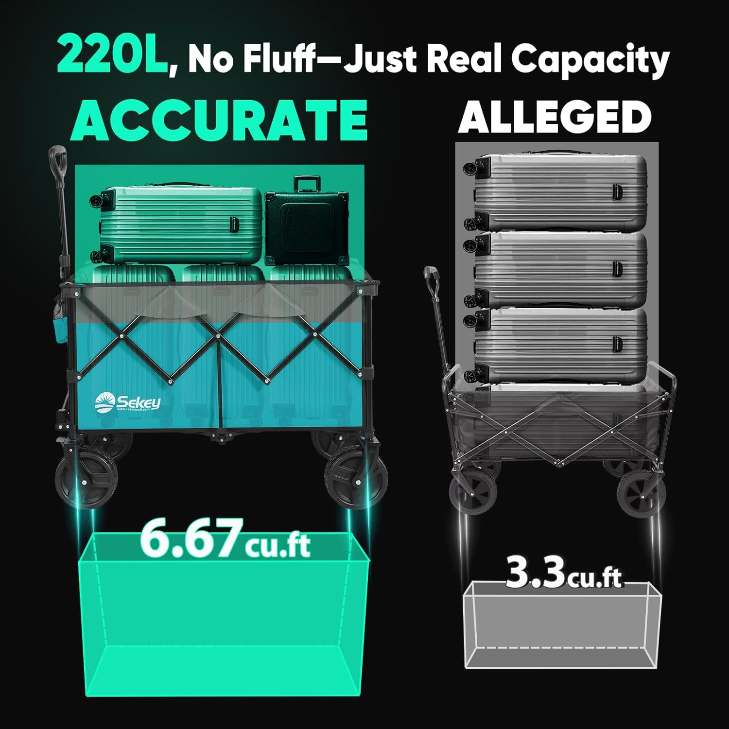 - ใ๐๐จ ๐๐ง๐ฒ๐ฐ๐ก๐๐ซ๐ ๐๐ก๐๐๐ฅ๐ฌใ: Featuring ๐" ๐๐ข๐๐ฆ๐๐ญ๐๐ซ ๐ฐ๐ก๐๐๐ฅ๐ฌ ๐๐ง๐ ๐" ๐ฐ๐ข๐๐ ๐ญ๐ซ๐๐๐๐ฌ, Sekey wagon glides effortlessly over sand and rough terrain. The ๐๐ง๐ญ๐ข-๐ฌ๐ฅ๐ข๐ฉ ๐ซ๐ฎ๐๐๐๐ซ strip enhances traction and reduces vibrations, while the ๐๐ฎ๐ข๐ฅ๐ญ-๐ข๐ง ๐๐ซ๐๐ค๐๐ฌ provide reliable stopping power wherever you go.