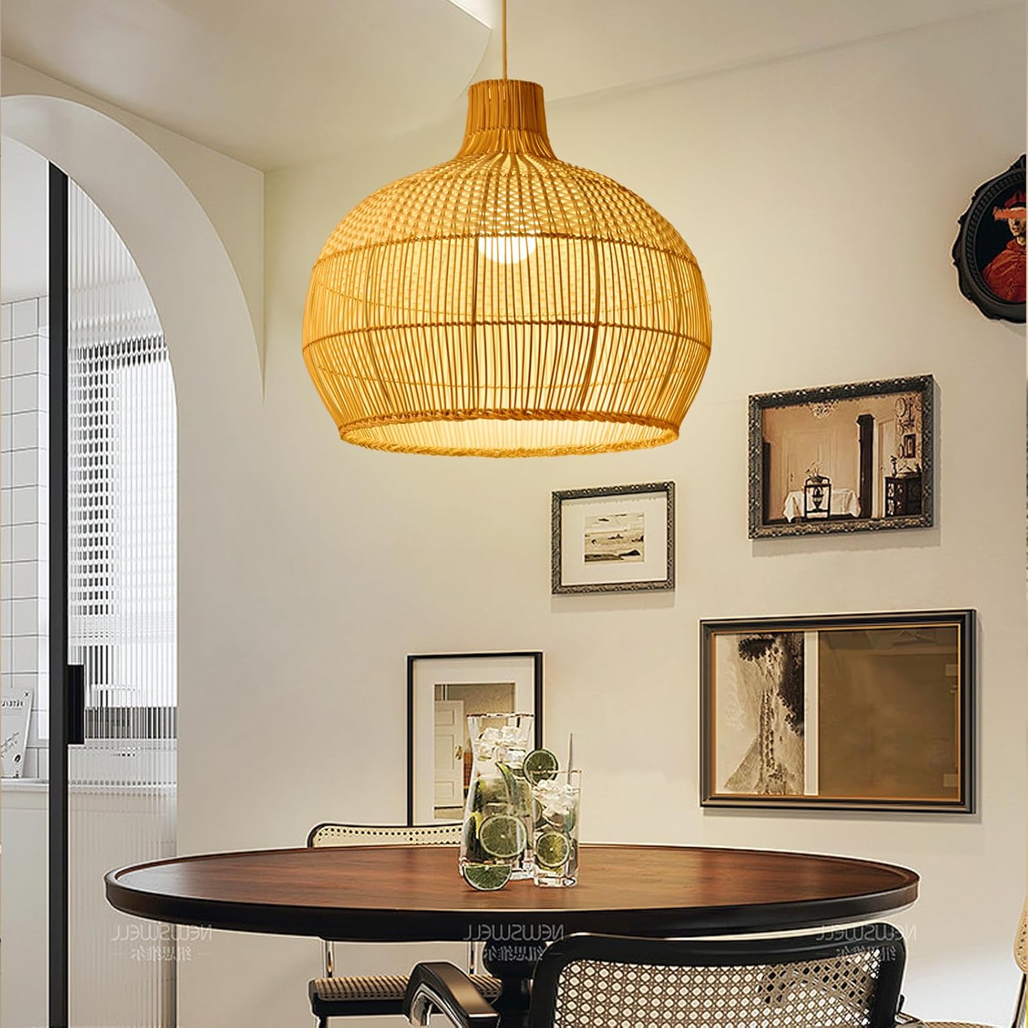 Arturesthome White Rattan Pendant Light for Kitchen Island Sink, Wicker Chandelier, Handmade Woven Hanging Ceiling Light Lampshade