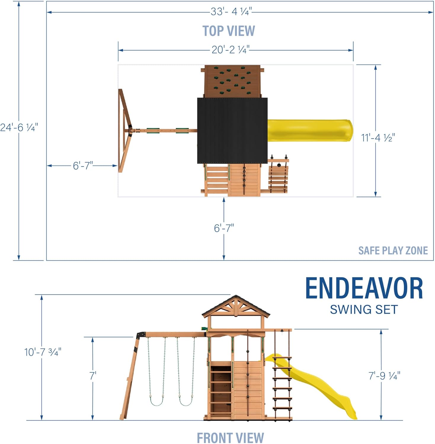 Backyard Discovery Endeavor Cedar Wood Swing Set with Wave Slide, Play Deck, Double Rock Wall, Rope Ladder, Climbing Wall, Belt Swings, 40-Inch Web Swing, Step Ladder, Toy Telescope, Outdoor Playset